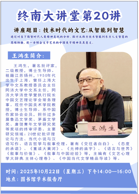 【学术讲座预告】终南大讲堂第20讲——技术时代的文艺:从...