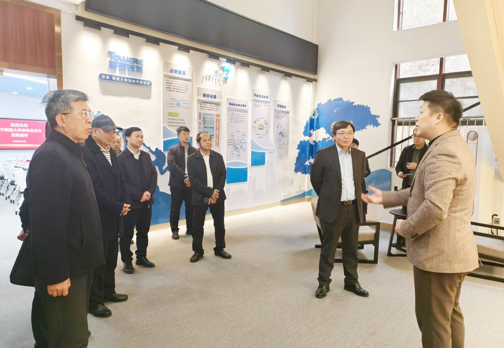 为深入贯彻落实国家关于高校毕业生就业工作的决策部署,加强校企之间的沟通与合作,拓宽毕业生就业渠道,提升人才培养质量,同时凝聚校友力量,共商学校发展大计,1月14日下午,学校校长李传起、副校长王国红一行前往广西塔易信息技术有限公司,开展访企拓岗与校友走访活动。