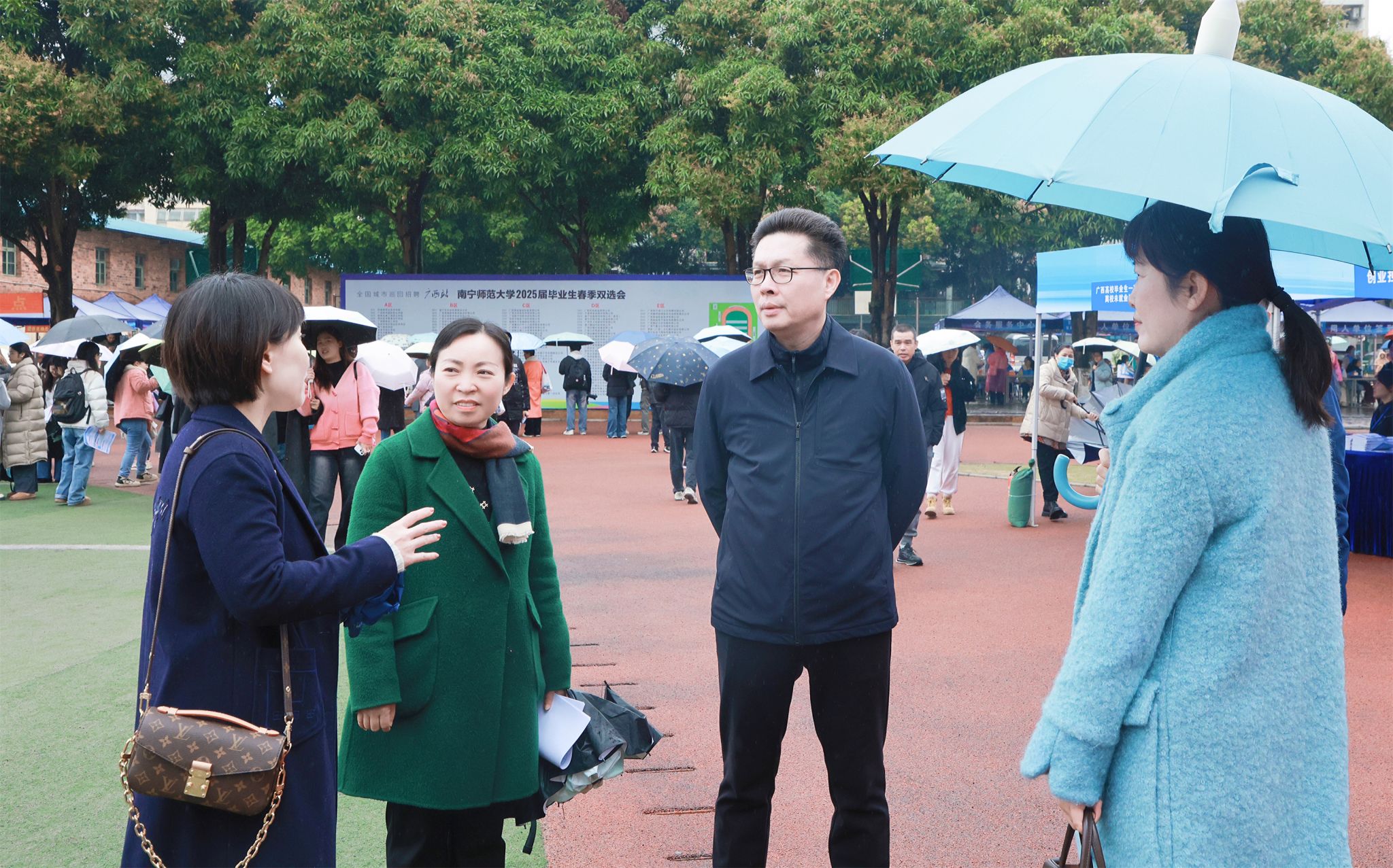 本次双选会得到了各级领导的高度重视和大力支持,自治区人才服务办公室副主任于红晖,学校党委书记张鹏,校长隆广庆,副校长龙妮娜、卢远等有关领导莅临双选会现场视察指导,亲切慰问参会用人单位有关领导和工作人员,积极开展访企拓岗促就业行动,并与招聘单位负责人和参会毕业生们进行亲切交流,详细了解企业招聘需求和毕业生求职应聘等关情况。