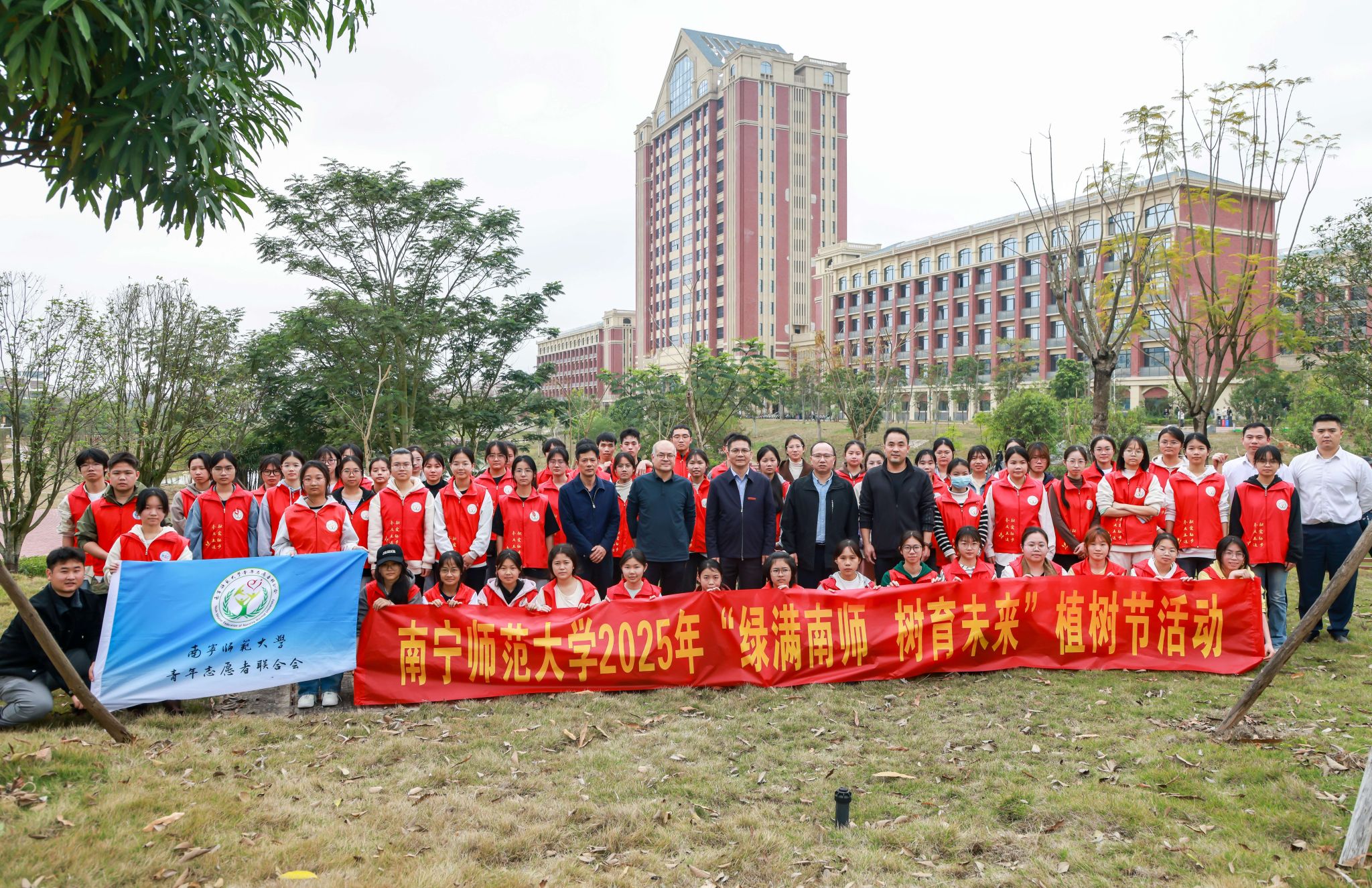 为树立开元官网师生绿色发展理念、生态环保意识,积极投身美丽南师建设,3月12日上午,校团委联合后勤基建处分别在五合、武鸣校区开展了“绿满南师 树育未来”植树节活动。学校党委书记张鹏、校长隆广庆、副校长龙妮娜、总会计师梁家斌,相关部门负责人及学生志愿者参加了本次活动。