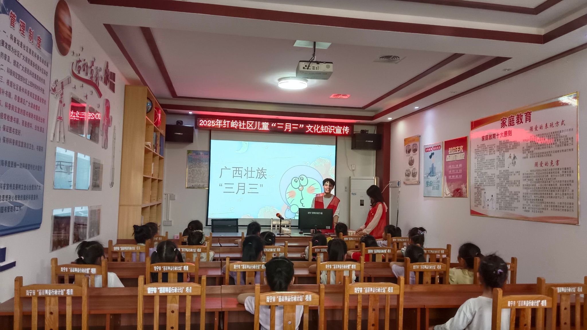 3月27日,旅游与文化学院开展“童趣竹编,邂逅三月三”活动,大学生们走进红岭社区,与小朋友们一起过节。活动围绕“广西三月三”文化讲解与竹编画创作体验展开,让小朋友们深入了解了“三月三”的起源、发展和传统习俗,将民族文化从小传承。数学与统计学院在武鸣校区举办的“汇聚民族风采,共筑团结校园”活动,设置了民歌猜民族、服装配对等环节,让同学们在参与挑战的同时,加深了对广西各民族特色的了解。