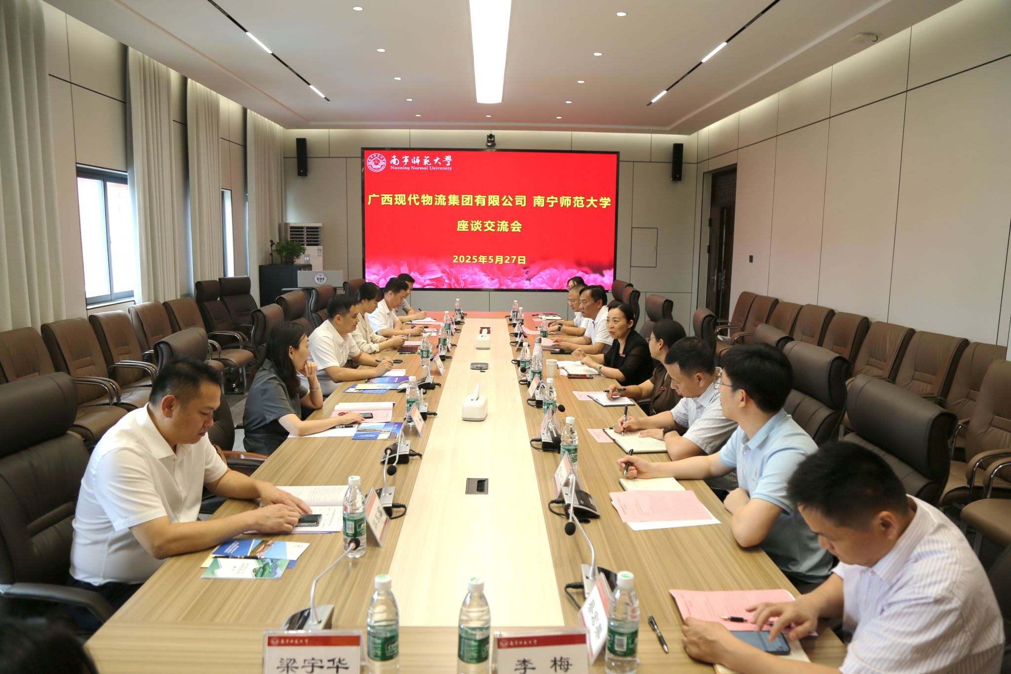 王辉对学校的热情接待表示感谢,并简要介绍了公司的基本情况。他表示,集团作为广西现代物流产业的中坚力量,在智慧物流、供应链管理、跨境商贸、物流职业教育等领域积累了丰富的实践经验与行业资源,期待与学校进一步深化交流合作,发挥学校学科、人才和科技优势,在项目培训、实习就业、课题联合申报等方面取得更进一步的合作成果,开创共赢发展新局面。