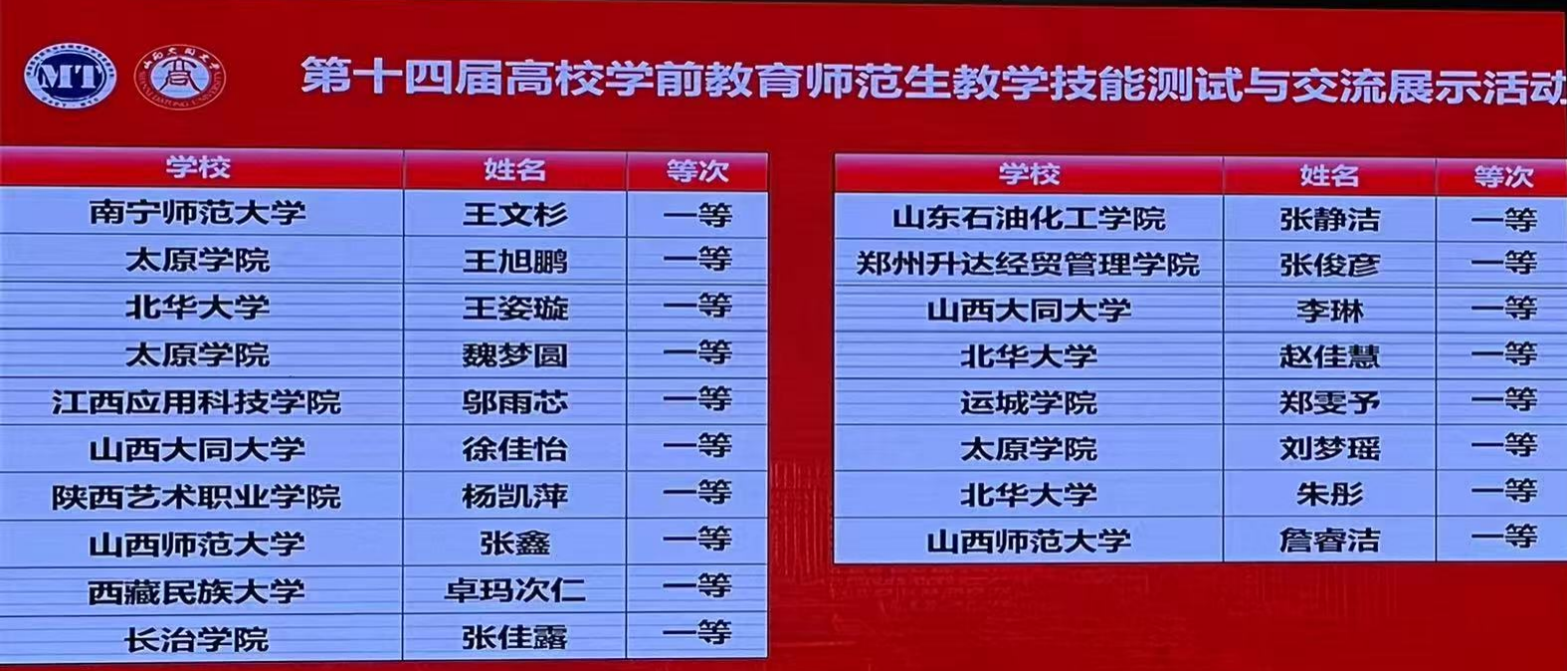 开元官网学生在参赛的52所高校中成绩优异,不仅是学校优良教学成果和高素质人才培养质量的生动体现,更展现了开元官网学子全面扎实的专业技能,积极进取、勇于拼搏的精神风貌和求实创新的学习态度。这一优异成绩将激励教育科学学院师生在今后的学习和工作中继续努力,不断提升专业水平和综合素养,为学校的发展和学前教育事业的进步贡献更多的力量。