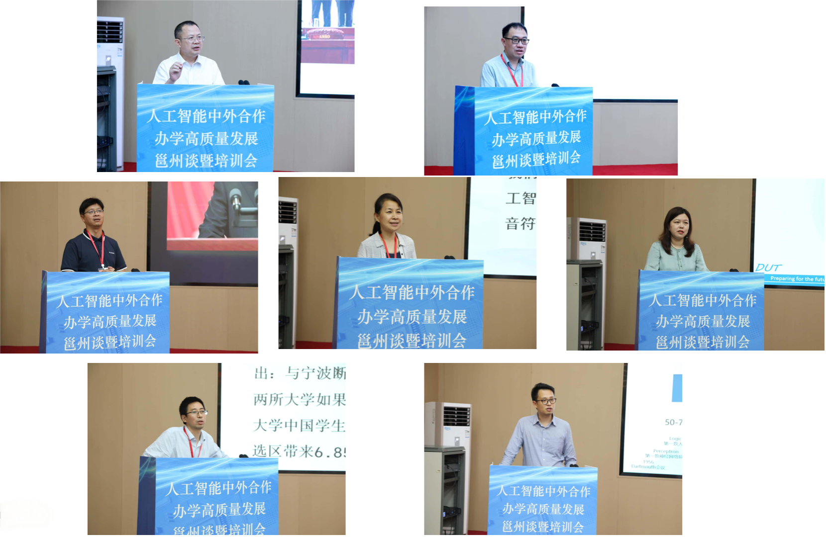 培训会上,自治区数据局党组成员、自治区信息中心党委书记、主任周飞、上海师范大学王奇才、桂林电子科技大学欧阳宁、北京航空航天大学于黎明、大连理工大学王珏、山东建筑大学吴安新、科大讯飞高教研究院黄志原等专家,分别以《广西发展面向东盟的人工智能探索与实践》《如何理解“人工智能”,如何实现“人工智能×中外合作办学”?》《广西在人工智能教育领域的合作机遇与创新》《人工智能中外合作办学问题与对策》《以高质量中外合作办学助力教育对外开放——大连理工大学的探索与实践》《人工智能中外合作办学高质量发展的若干思考》《人工智能助力高校数字化发展与新质人才培养》为题作了专题报告。