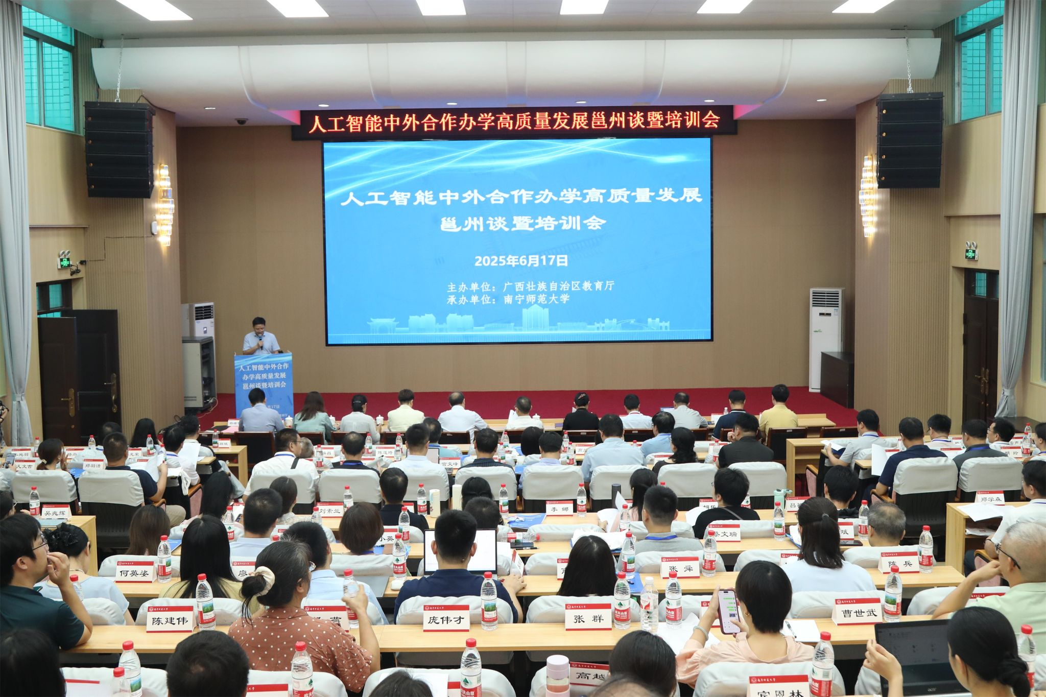 此次会议围绕广西在人工智能教育领域的合作机遇与创新、人工智能中外合作办学问题与对策等议题开展研讨和培训,共享人工智能赋能教育、人工智能赋能学科发展等方面的先进理念和先进经验,旨在落实自治区政府加快推动人工智能高质量发展的工作方针,推动我区高校中外合作办学提质增效,打造面向东盟的人工智能国际合作高地。