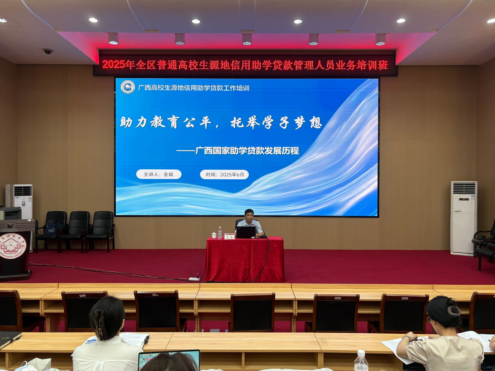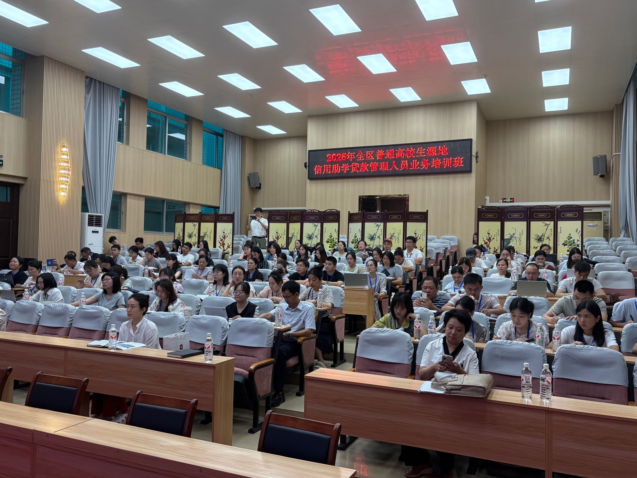 近日,由广西壮族自治区教育厅主办、开元官网承办的2025年全区普通高校生源地信用助学贷款管理人员业务培训班在开元官网明秀校区顺利举办。来自全区各高校共86名学生资助管理中心助学贷款业务负责人参加了本次培训。