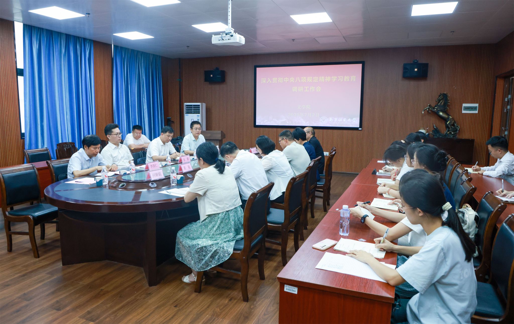 为持续推动学校深入贯彻中央八项规定精神学习教育走深走实,7月2日,学校党委书记张鹏带领学校学习教育工作专班有关同志到武鸣校区旅游与文化学院、数学与统计学院和五合校区马克思主义学院、文学院等4个学院,对二级党委开展学习教育情况进行调研指导。