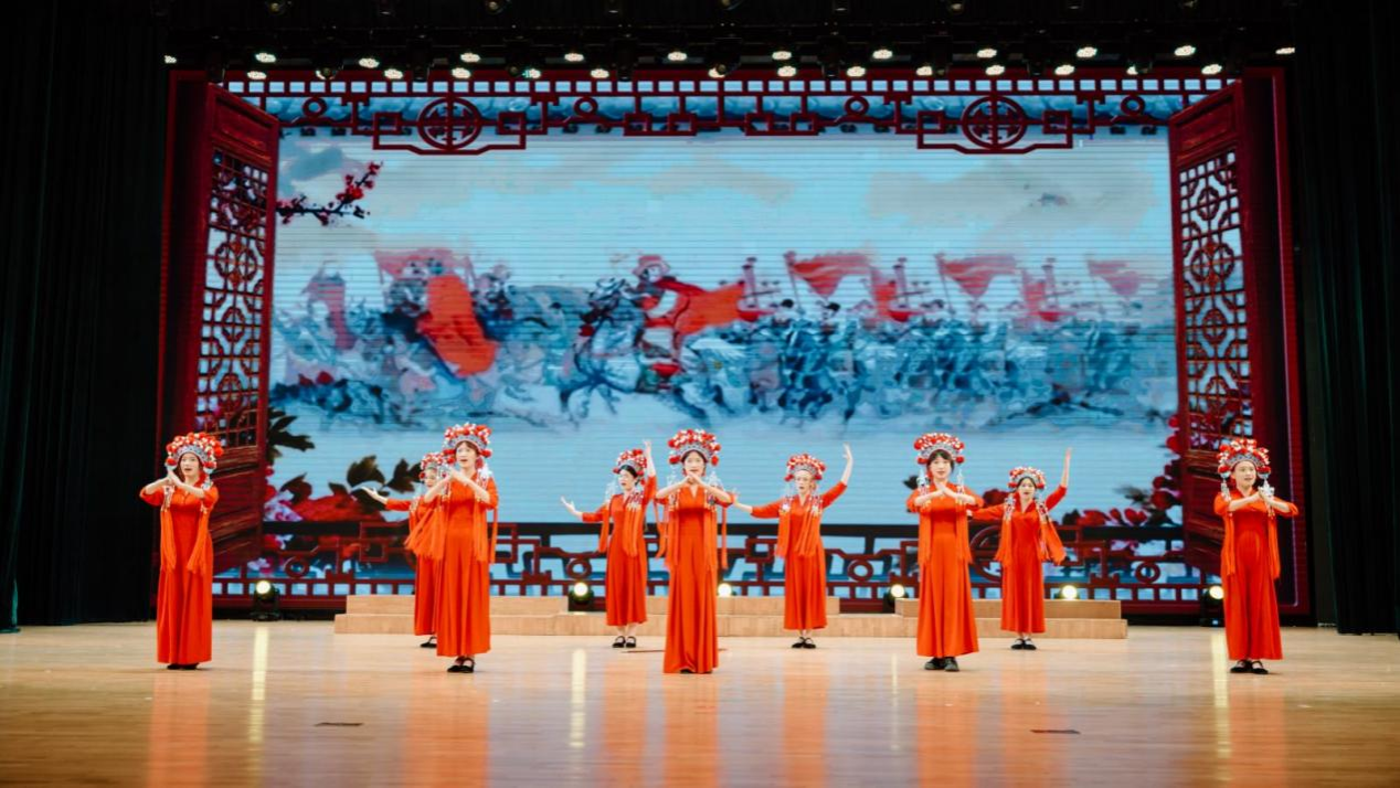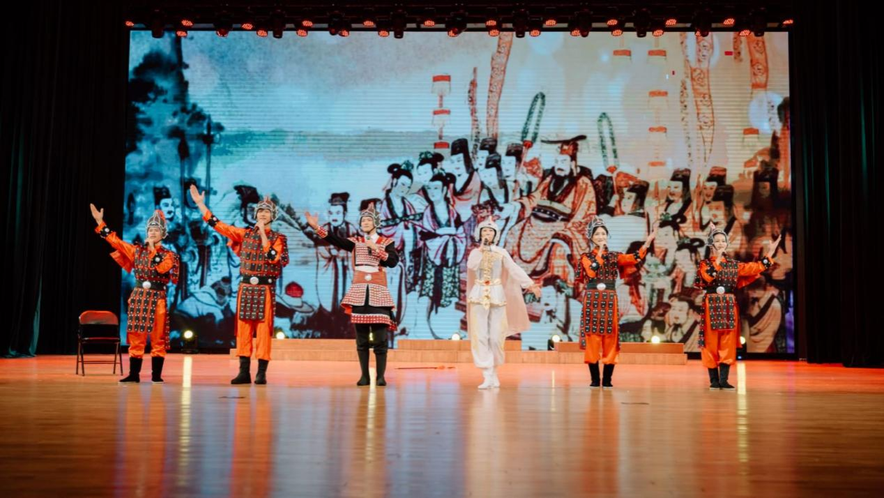 浩气贯时空,古今共长歌。第三篇章高潮迭起。《木兰诗》结合戏曲唱段《谁说女子不如男》,以刚柔并济的演绎,唱响巾帼不让须眉的英雄气概;《将进酒》以豪迈的演唱、激越的朗诵与奔放的舞姿,再现了李白“黄河之水天上来”的磅礴激情。最后,音乐与舞蹈学院合唱团以恢弘气势唱响苏轼《念奴娇·赤壁怀古》(大江东去),在激情澎湃的合唱与气势磅礴的朗诵中,将千古文人的旷达胸襟与历史沧桑感推向极致,为晚会画上震撼人心的句号。