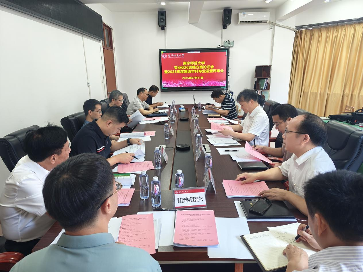 7月11日上午,学校在明秀校区行政楼316会议室召开专业优化调整方案论证会暨2025年度普通本科专业设置评审会。学校副校长卢远,桂林电子科技大学、广西民族大学、广西科学院、广西纬福信息技术有限公司等单位专家,以及人事处、发展规划与学科建设处、学生工作处、国有资产与实验室管理中心、教务处等相关负责人,“供应链管理”“人工智能”专业申报负责人及团队成员参加会议。