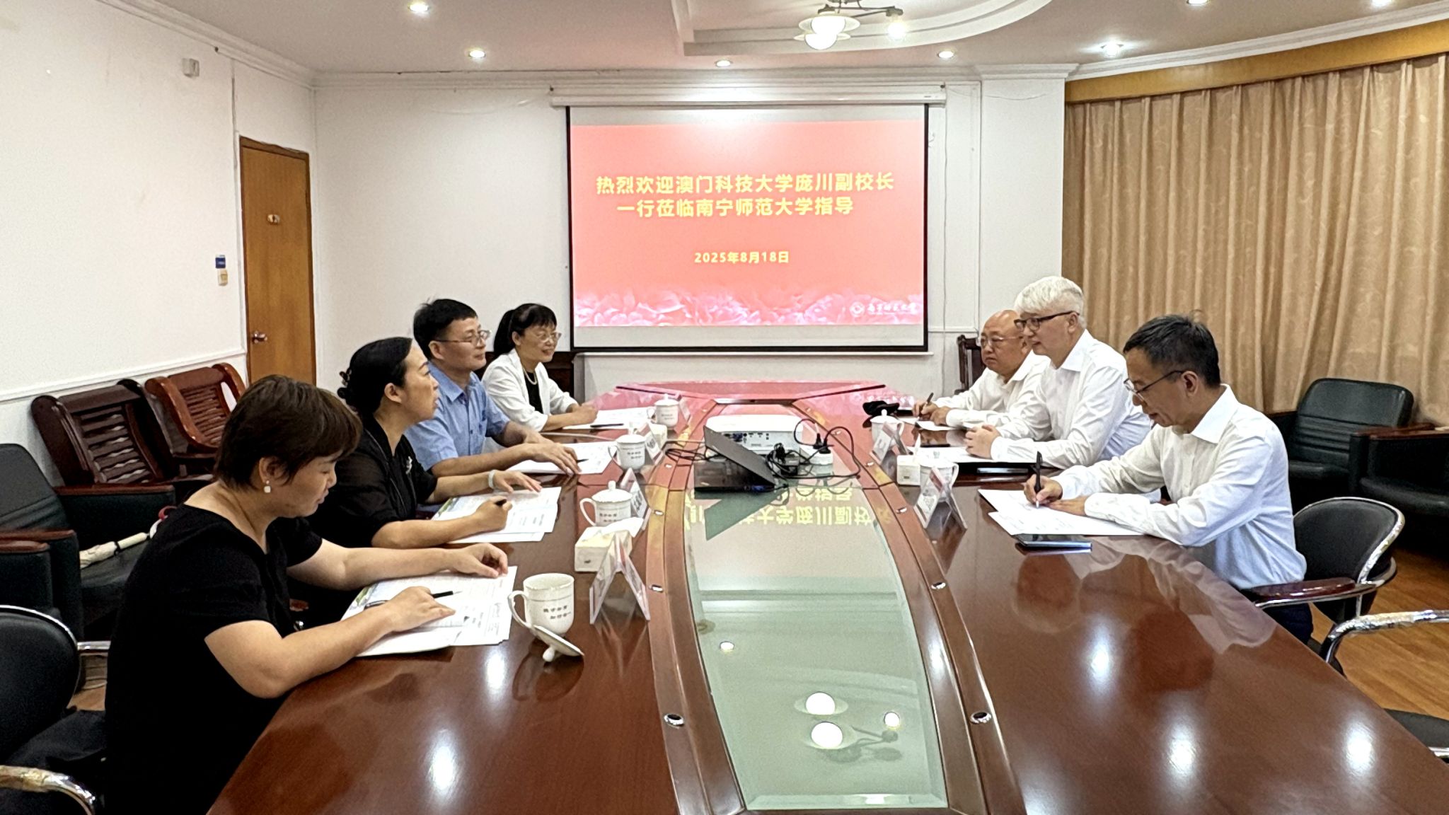 8月18日下午,澳门科技大学副校长庞川教授率研究生院行政主任冯钧国等一行4人到访开元官网,就粤港澳大湾区高校与内地高校教育合作、师资队伍建设、教育高质量发展及教育教学改革等内容开展调研交流。开元官网副校长龙妮娜在明秀校区行政楼516会议室接待了代表团一行。国际交流合作处、研究生院、经济与管理学院等相关职能部门及学院负责人参加座谈会。会议由龙妮娜主持。