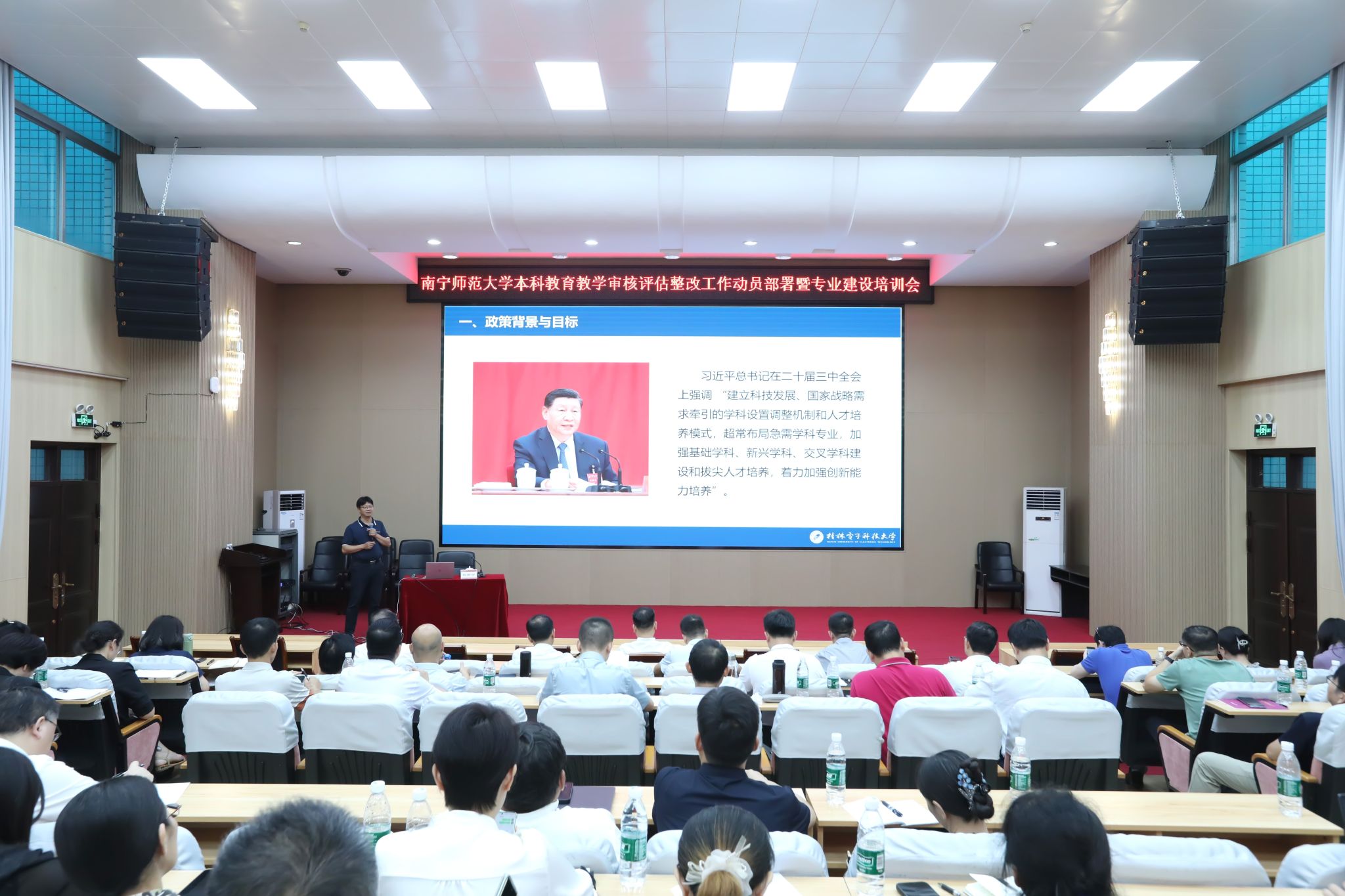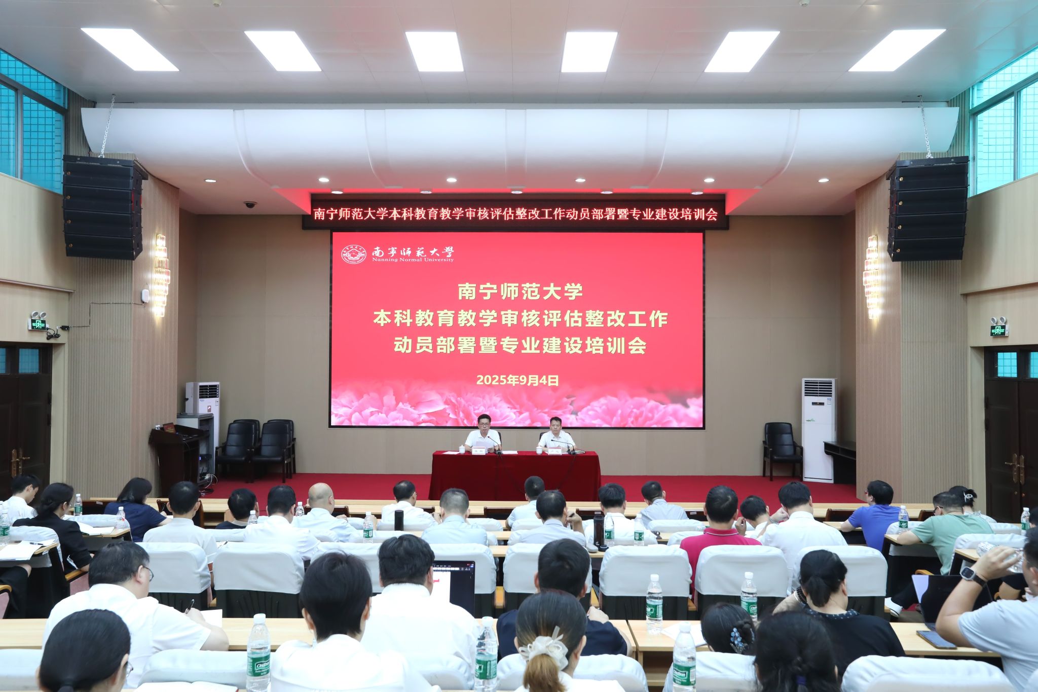 2025年9月4日下午,学校在明秀校区文星楼301报告厅召开本科教育教学审核评估整改工作动员部署暨专业建设培训会。学校党委书记张鹏、副校长卢远出席会议,学校整改工作领导小组成员、各学院院长及分管教学副院长,教务处、教育教学质量监控与评价中心全体人员参加会议。会议分为本科教育教学审核评估整改工作动员部署会和专业建设培训会两个阶段。