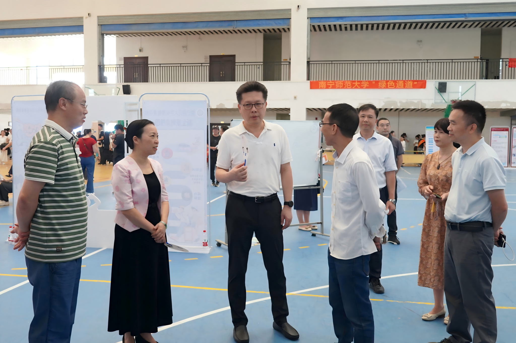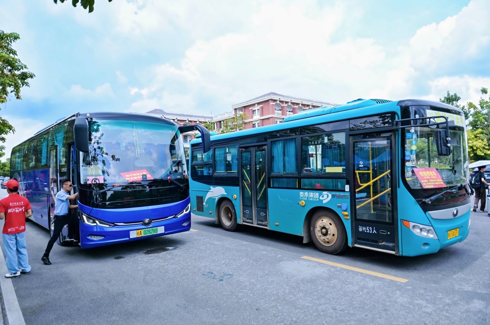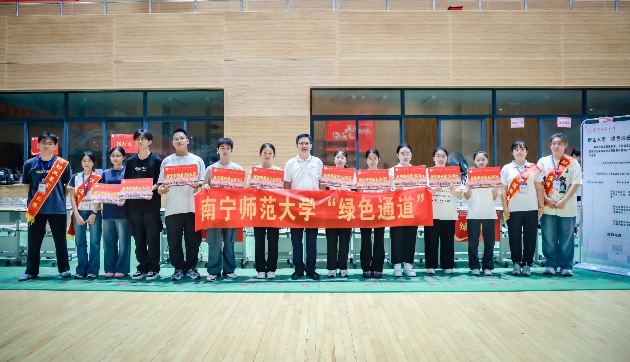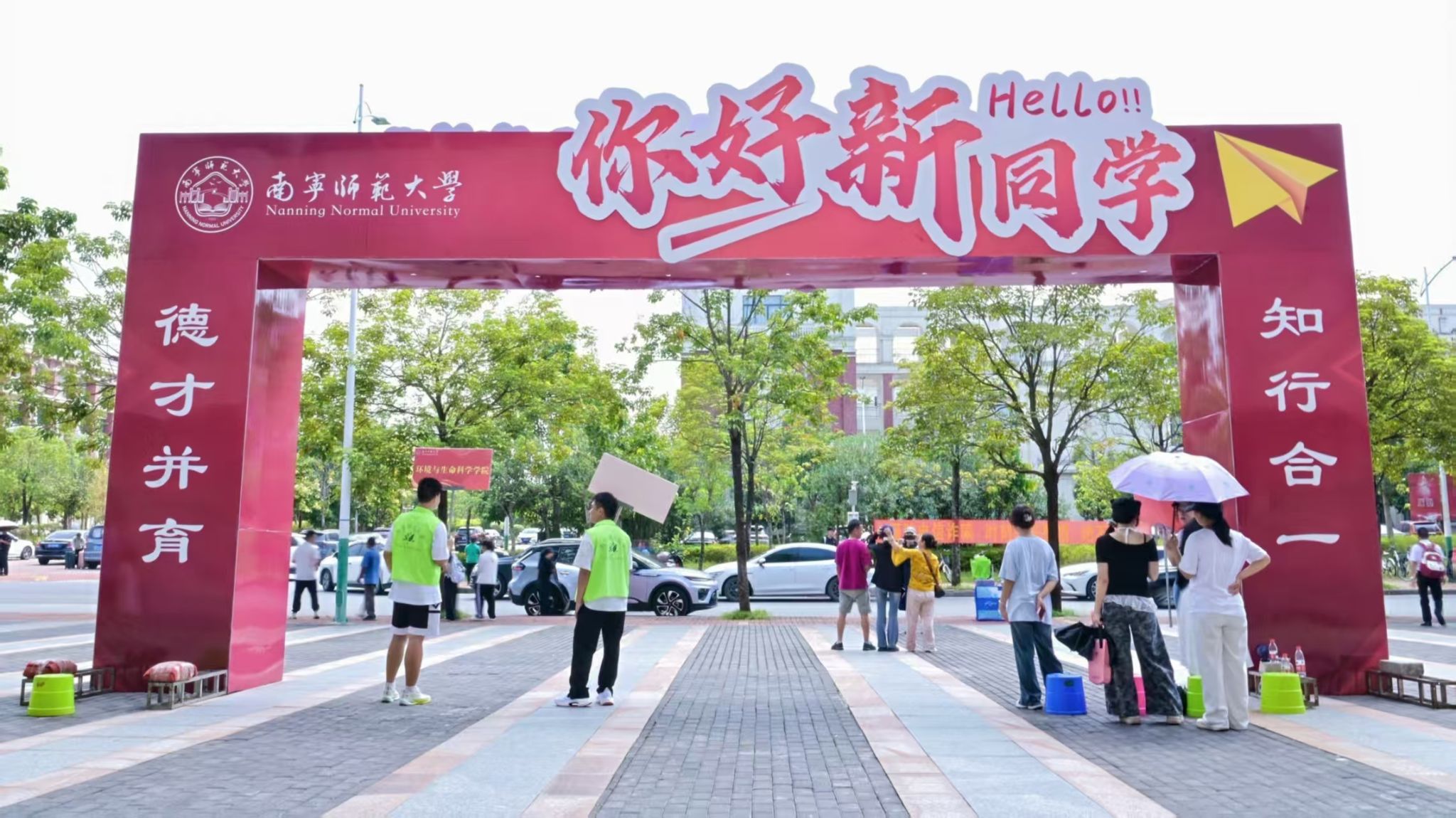 为保障新生安全便捷到校,学校分别在埌东汽车客运站、南宁火车东站、南宁火车站、南宁火车北站等设立新生接待点,安排接站车辆和学生志愿者在各接站点接送新生。在各校区门口,志愿者们举着醒目的引导牌,穿梭于校园各处,热情地帮助新生指引路线、搬运行李……成为校园里一道靓丽的“风景线”。