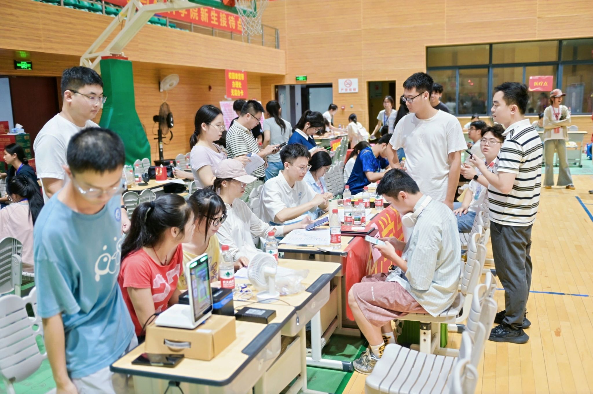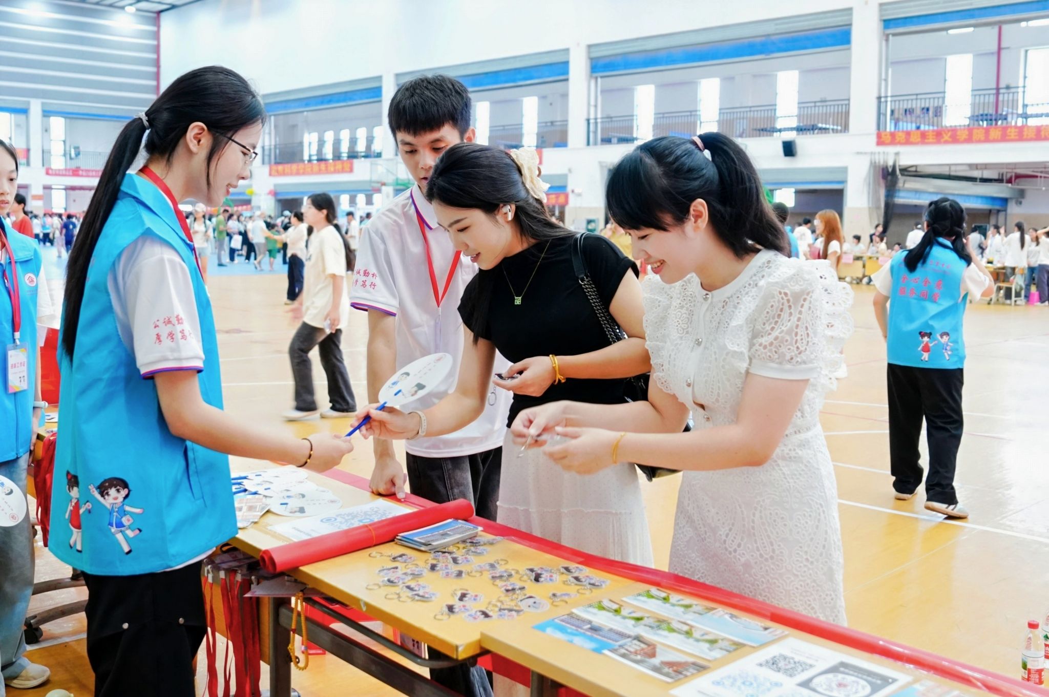 学校各相关职能部门在报到现场设置服务点位,为新生提供教学、生活等方面保障咨询服务。学校还通过展板、宣传页、新媒体平台等多种形式,向新生及家长介绍学校环境、学科特色、资助政策及安全须知,帮助新生快速熟悉校园环境。