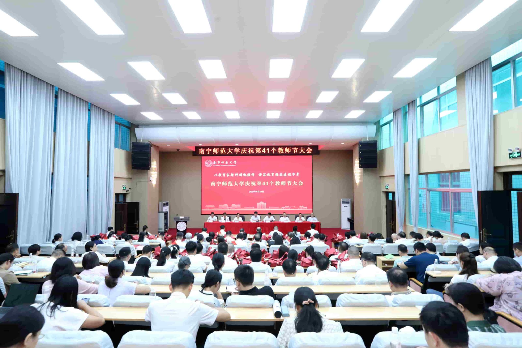各党政群团管理机构、直属业务部门、教学科研单位、附属机构、广西现代教育杂志社有限公司主要负责人,近年在教师队伍建设中取得突出成绩的教师代表,满30年教龄的教师代表,新晋正高级专业技术职务教师代表,新入职教师代表,校友代表,以及各学院师生代表参加大会。