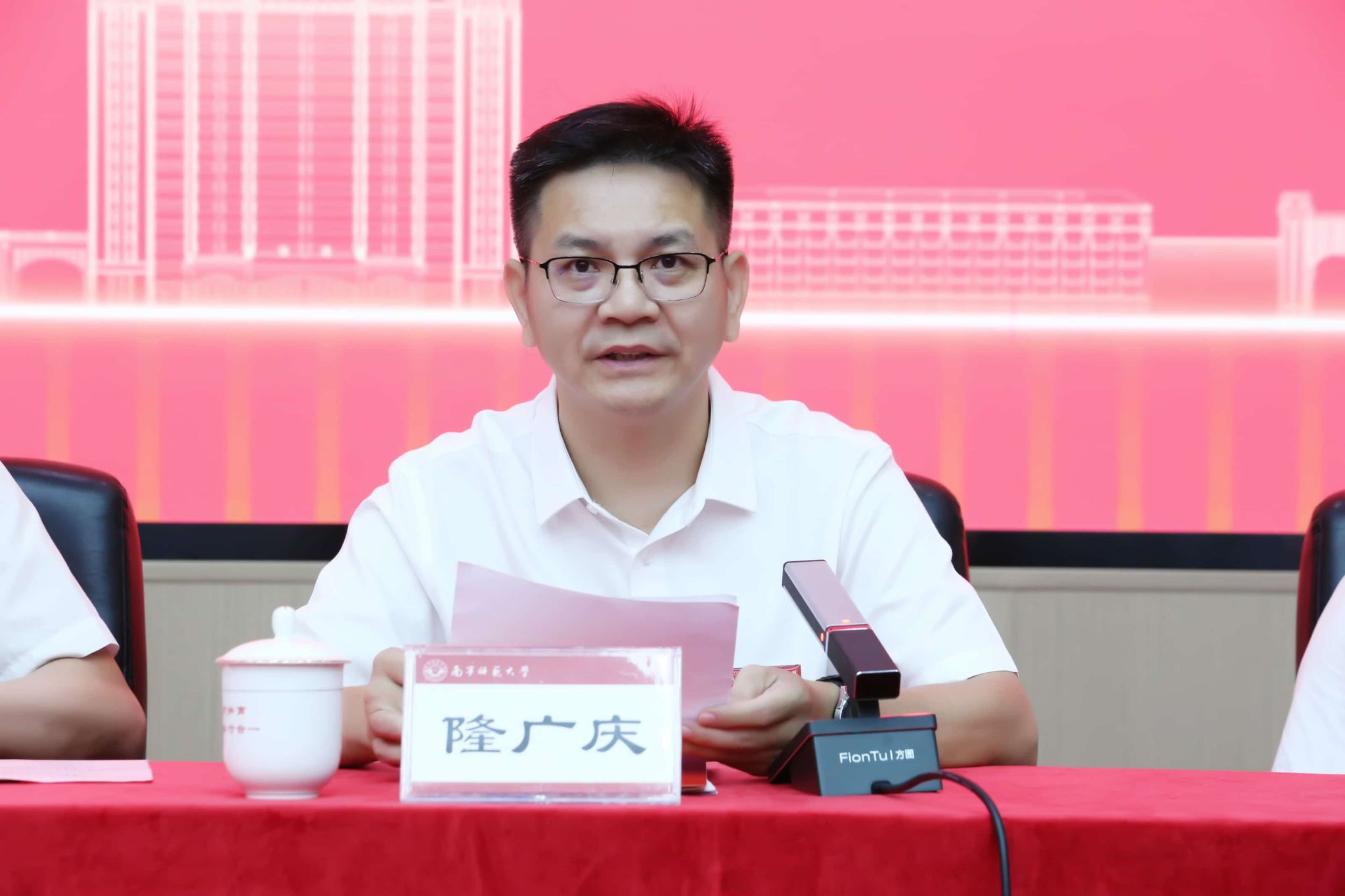 在交流发言环节,四位代表从不同角度分享了他们对教育家精神的感悟与实践。学生代表、法学与社会学院2022 级历史专业董金洋同学在发言中表达了对学校与老师的感恩之情,展现了新时代青年学子的奋进姿态。校友代表、南宁市翠竹实验学校校长陆朝鹏深情回顾了在母校的求学经历,讲述自己坚守基础教育一线、助力扶贫助学的故事。新教师代表、新闻与传播学院邓忠分享了初入南师大的感受,承诺以教育家精神为灯塔,在育人路上砥砺前行。全国模范教师、初等教育学院梁晓红表示每一位教师都是教育强国路上的基石,呼吁教师坚守教育初心,锤炼过硬本领,悦享教育的幸福。