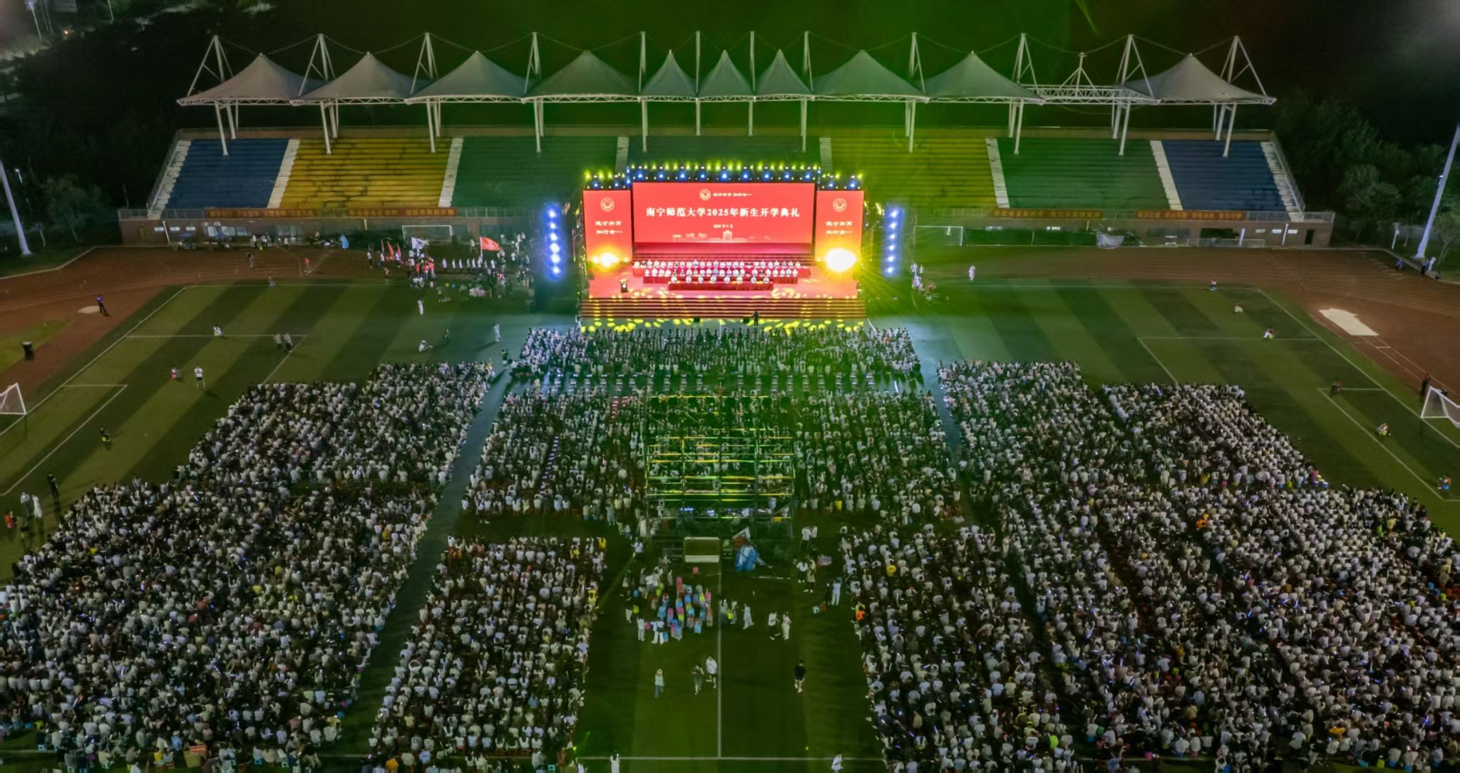 2025年9月10日、11日晚,开元官网分别在武鸣、五合两个校区举行2025年新生开学典礼暨美育大思政课。校领导张鹏、隆广庆、唐荣双、王国红、李美清、龙妮娜、卢远、梁家斌,学校各职能部门负责人、学院负责人、教师代表和全体新生参加了活动。开学典礼由学校副校长龙妮娜主持。