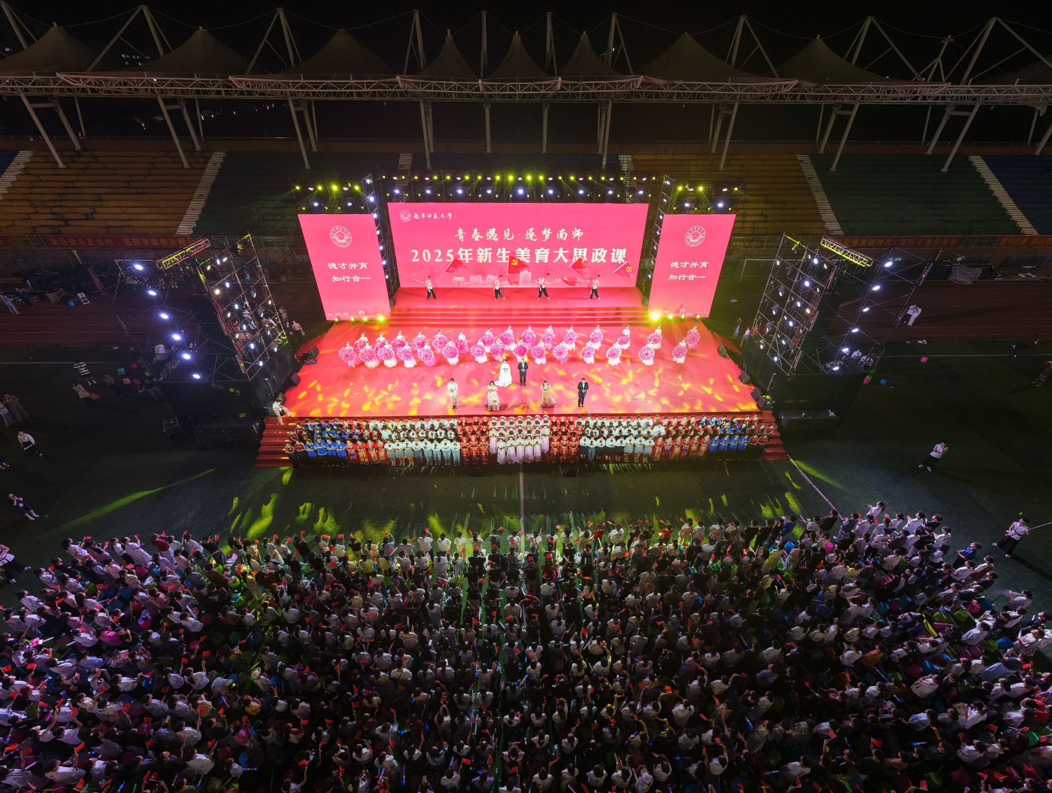 开学典礼结束后,迎来新生第一课——“青春遇见·逐梦南师”美育大思政课。课程围绕“初见南师·心之所向”“多彩南师·美美与共”“逐梦南师·扬帆启航”三个篇章展开,以艺术为载体、以思政为内核,生动展现了学校的文化底蕴与美育成果。