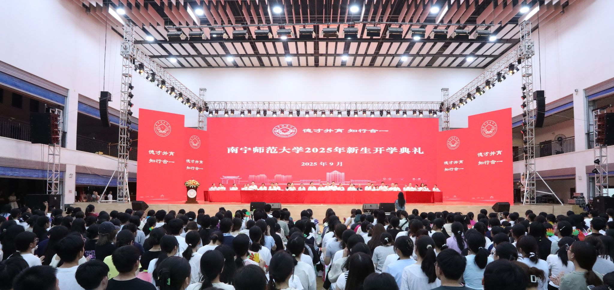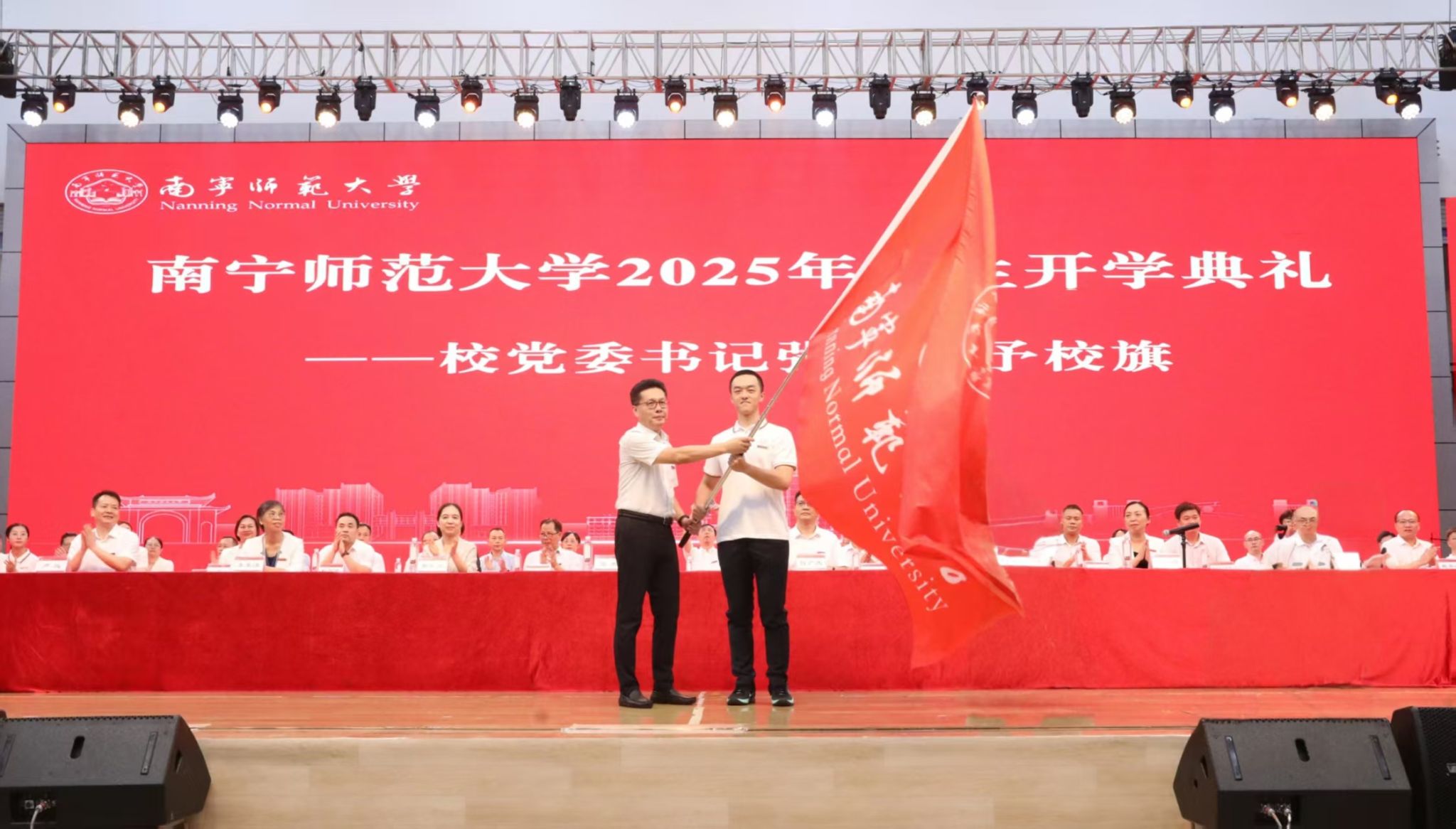校长隆广庆以《筑牢原点 延伸横轴 拓展纵轴》为题作开学讲话。他回顾了学校七十余载办学历程与成就,并借用函数坐标轴“一点两轴”的概念寄语新同学:不忘初心,筑牢大学坐标系的“原点”;不负青春,延伸立德修身的“横轴”;不畏未来,拓展锤炼本领的“纵轴”。希望同学们既学有所长又博采众才,争做“有理想、敢担当、能吃苦、肯奋斗”的新时代南宁师大人。