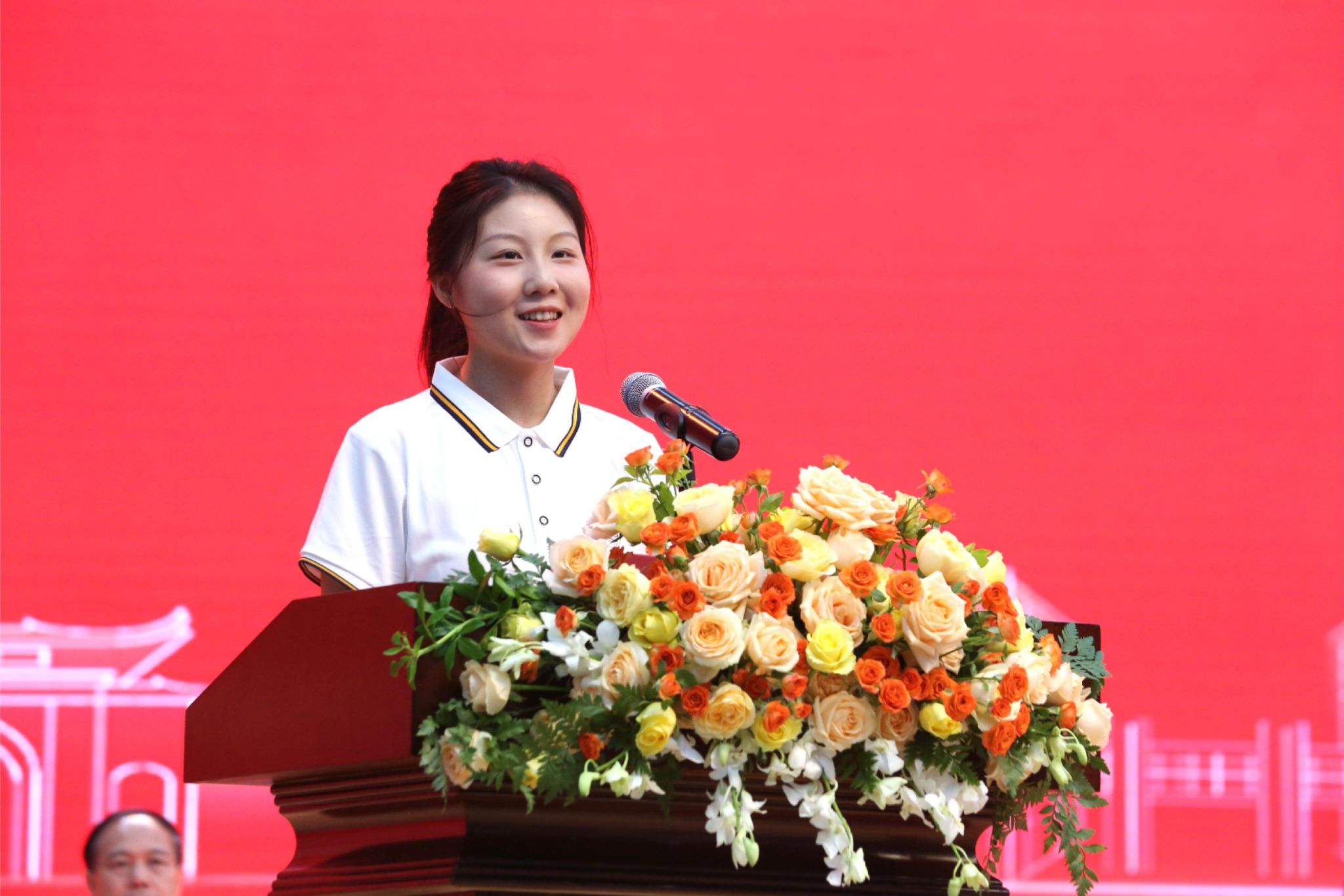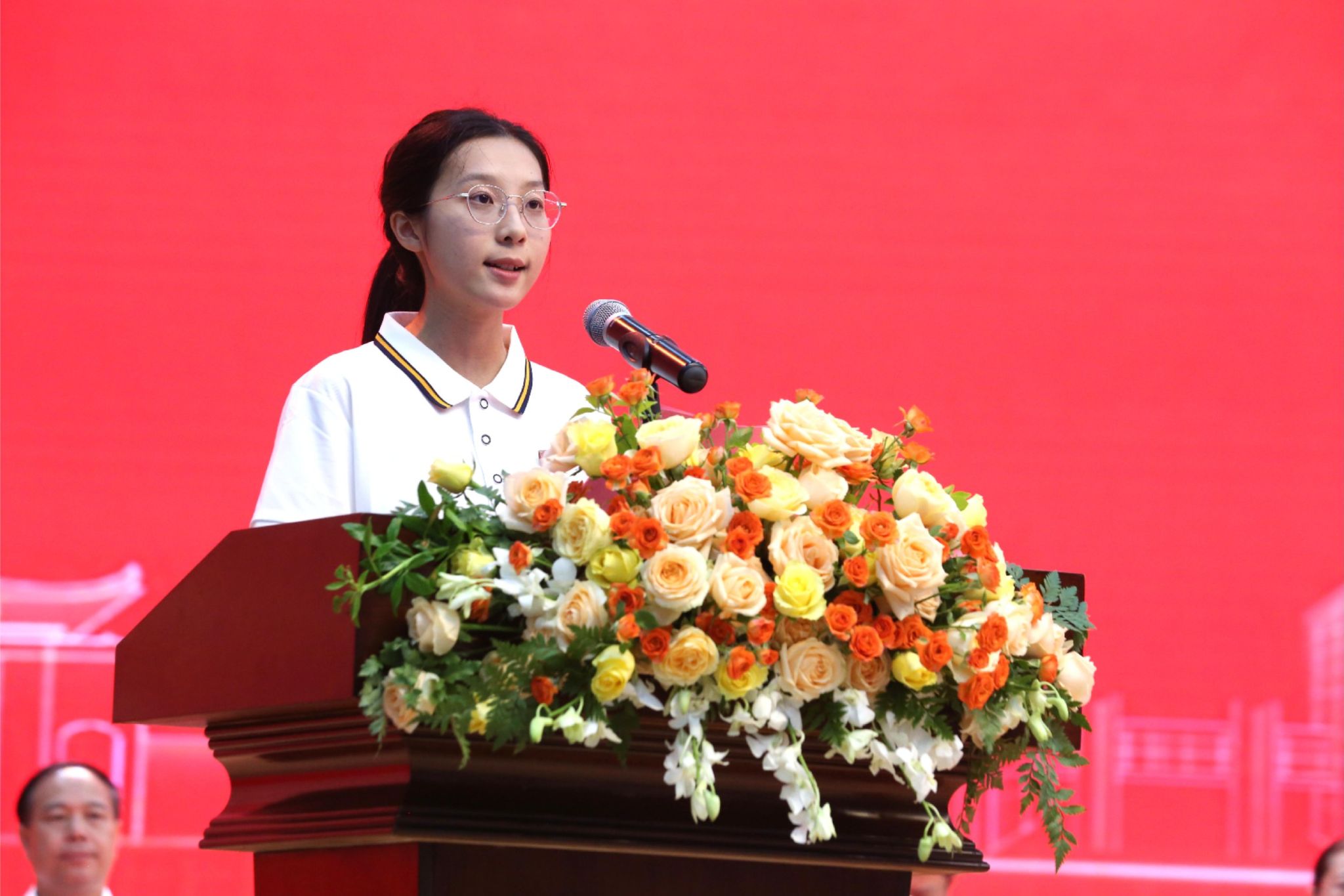 高年级学生代表彭远钧、刘泳秀分享了大学学习生活的成长与感悟,鼓舞新同学用青春筑梦、以笃行担当,书写为中国式现代化挺膺奉献的青春篇章。