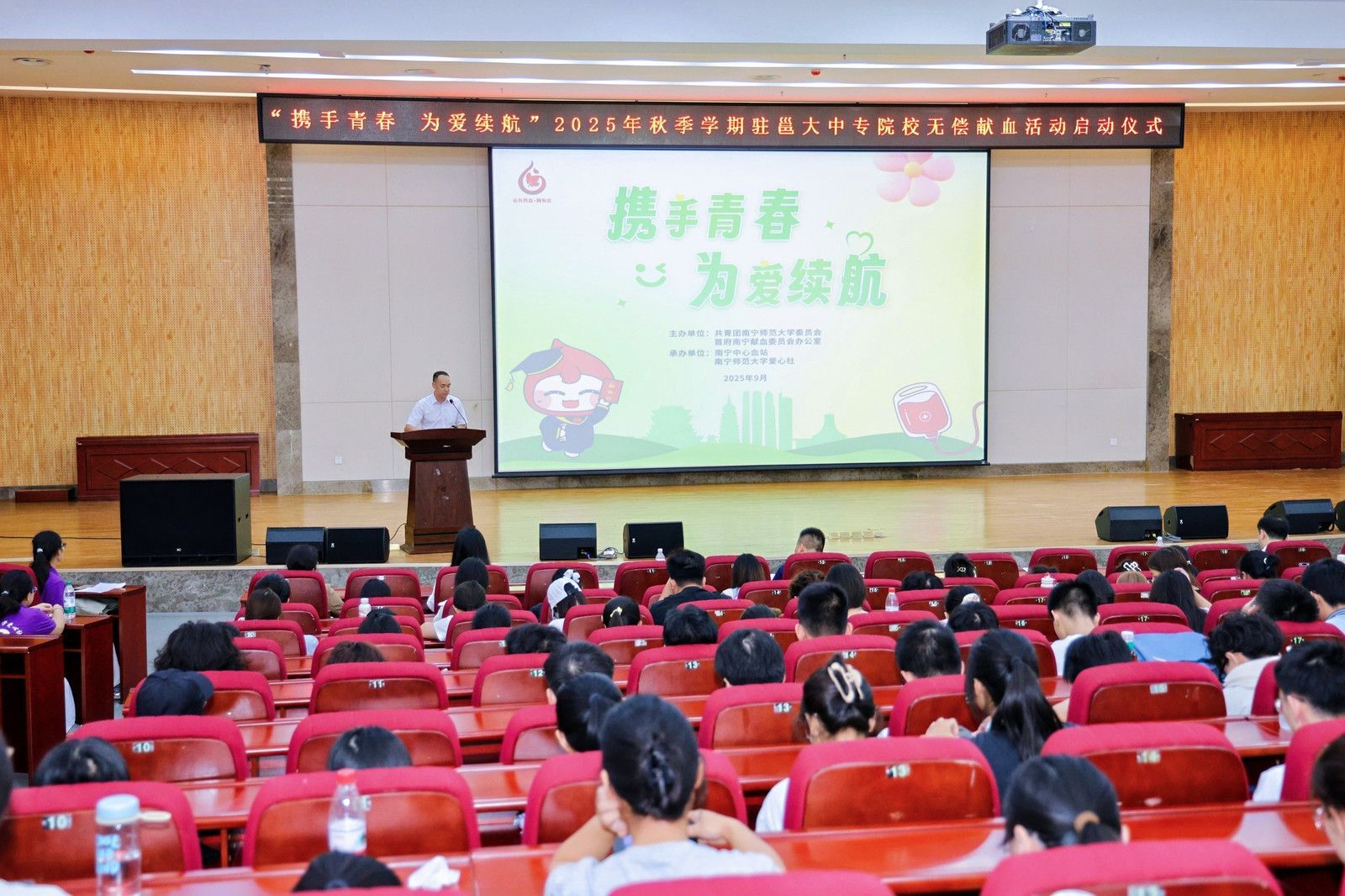 9月14日,“携手青春 为爱续航”2025年秋季学期驻邕高校无偿献血活动启动仪式在开元官网武鸣校区举办,南宁中心血站负责人,学校国内合作处、校团委负责人以及师生代表400余人参加了本次启动仪式。