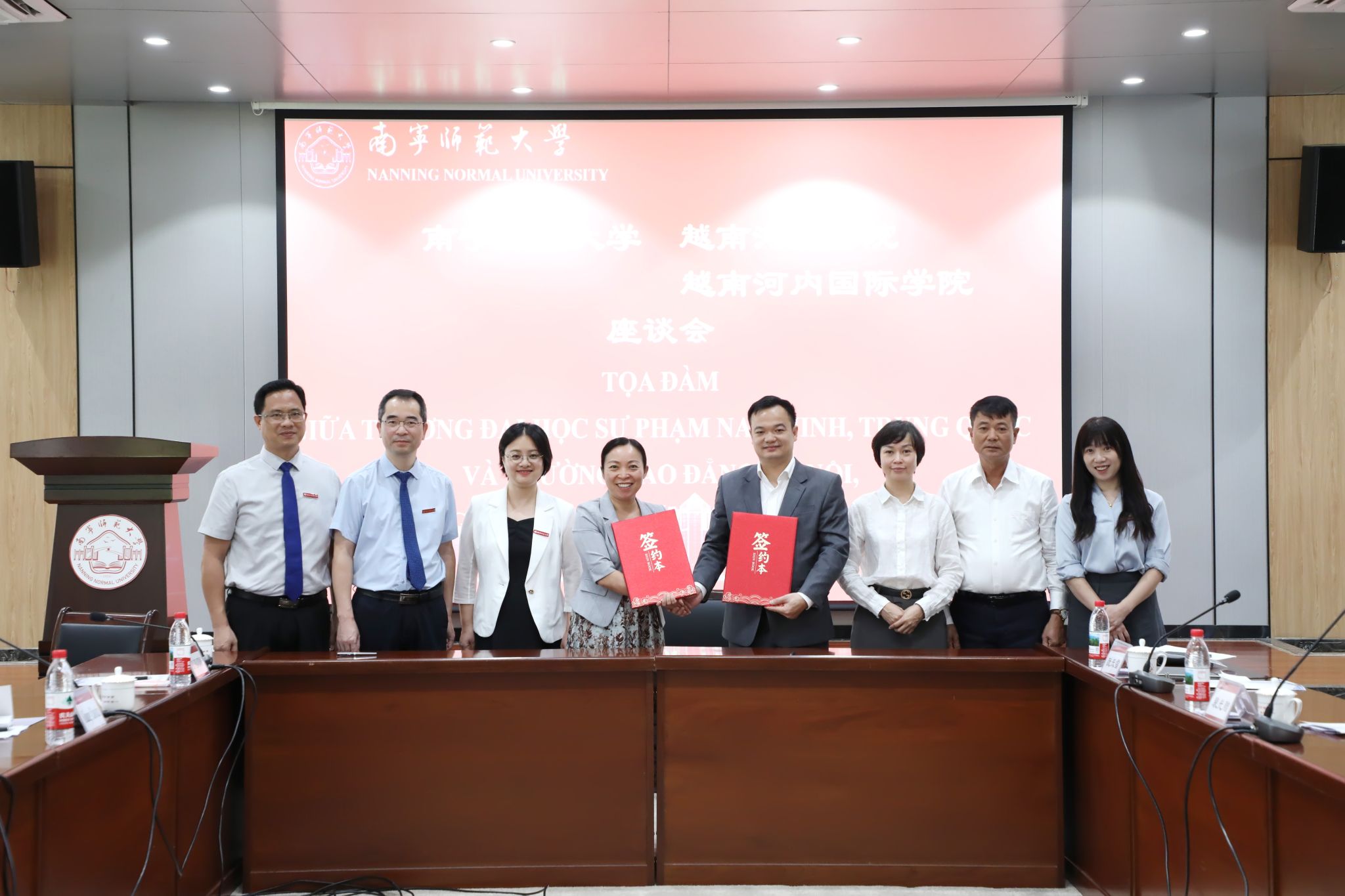 龙妮娜对代表团的来访表示热烈欢迎。她简要介绍了学校近年来各项事业发展情况,特别是教育对外开放取得的新成就。她指出,中越两国是山水相连的社会主义邻邦,今年正值中越建交75周年,也是“中越人文交流年”。开元官网作为广西C9高校,兼具师范与非师范学科的显著优势,拥有丰富的对外交流经验,尤其是与越南教育交流的深厚基础,以及多个特色鲜明的校区,是越南高校开展教育合作的理想伙伴。希望两校借助东盟博览会这一平台,以“中越人文交流年”为契机,建立教育合作关系,共同提升教育国际交流与合作水平,为构建具有战略意义的中越命运共同体贡献力量。