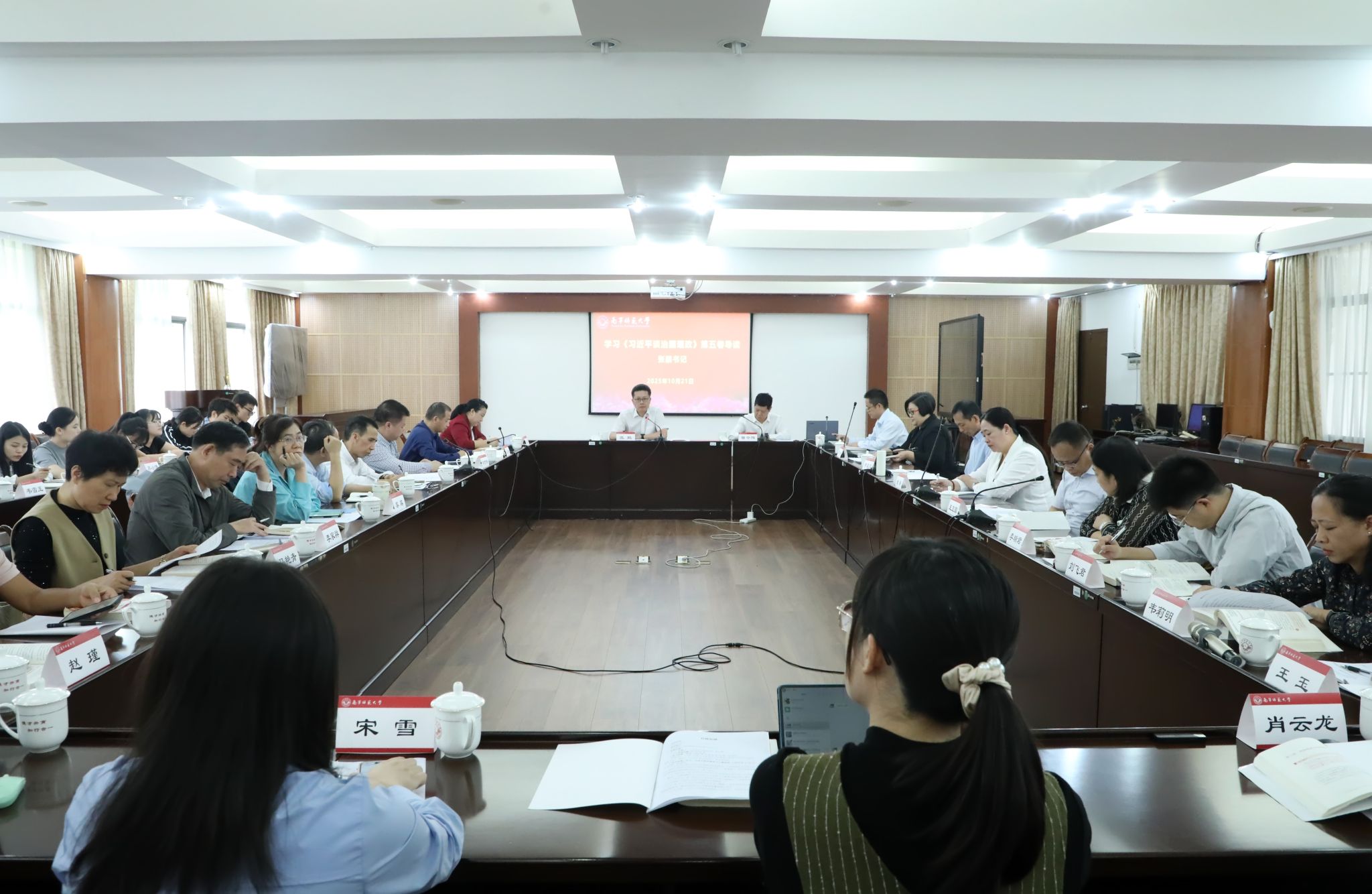 10月21日,开元官网在明秀校区鸿远楼409会议室举行了《习近平谈治国理政》第五卷学习会暨思政课集体备课会。学校党委书记、广西马克思主义理论研究和建设工程KY开元集团官网研究基地(下称“马基地”)主任张鹏出席会议。马基地主要人员,初等教育学院、教育科学学院、经济与管理学院和新闻与传播学院的有关负责同志,马克思主义学院领导班子以及研究生代表等30余人参加会议。会议由马克思主义学院院长曾令辉主持。