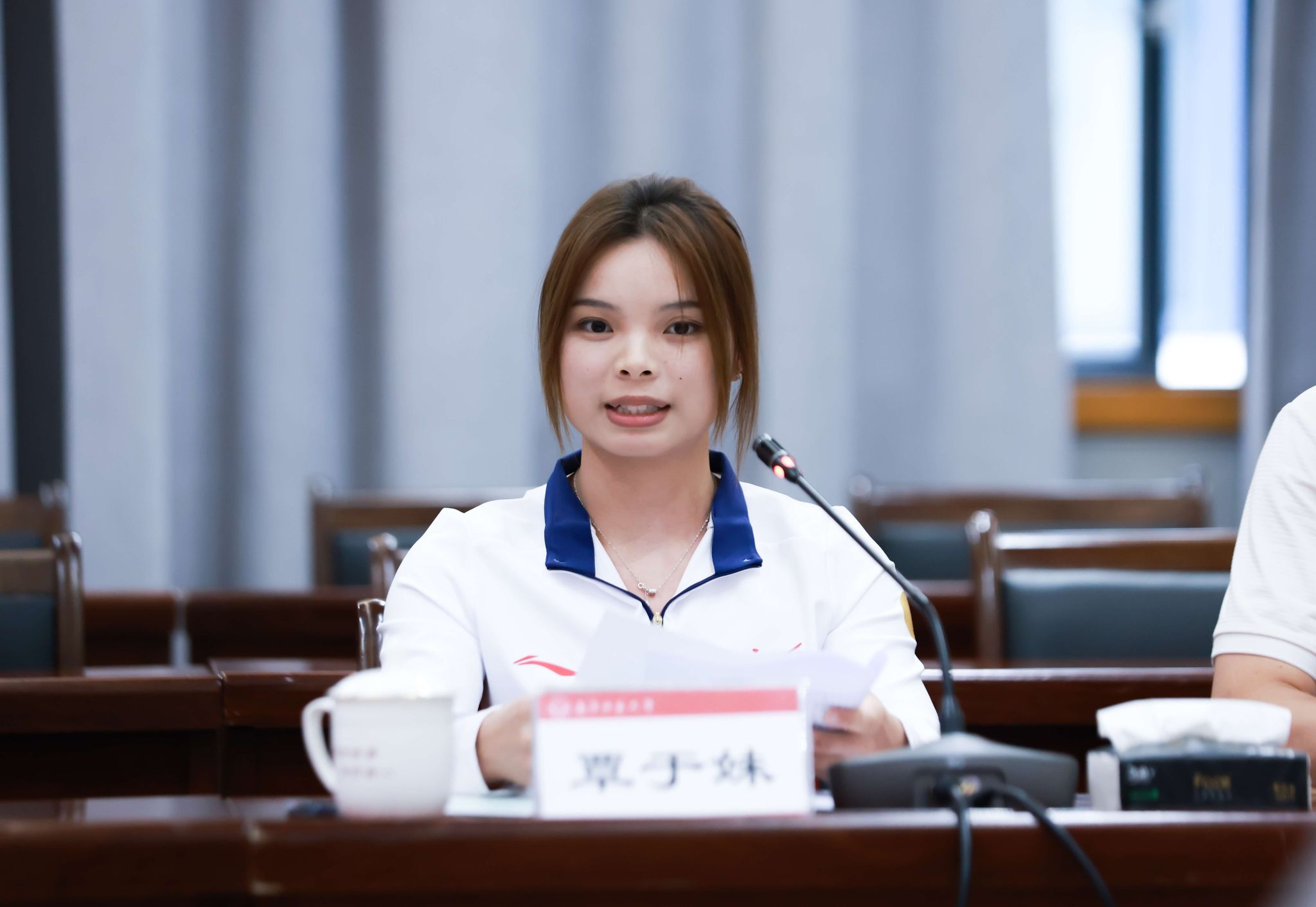 新入学的2025级运动训练专业学生、广西优秀攀岩运动员覃于妹分享了她的感受及未来的学业规划,她感谢自治区体育局的培养与输送,也感谢KY开元集团官网提供的宝贵学习机会,表示将珍惜校园时光,努力实现运动成绩与学术修养的双重提升,继续为广西和国家争光。