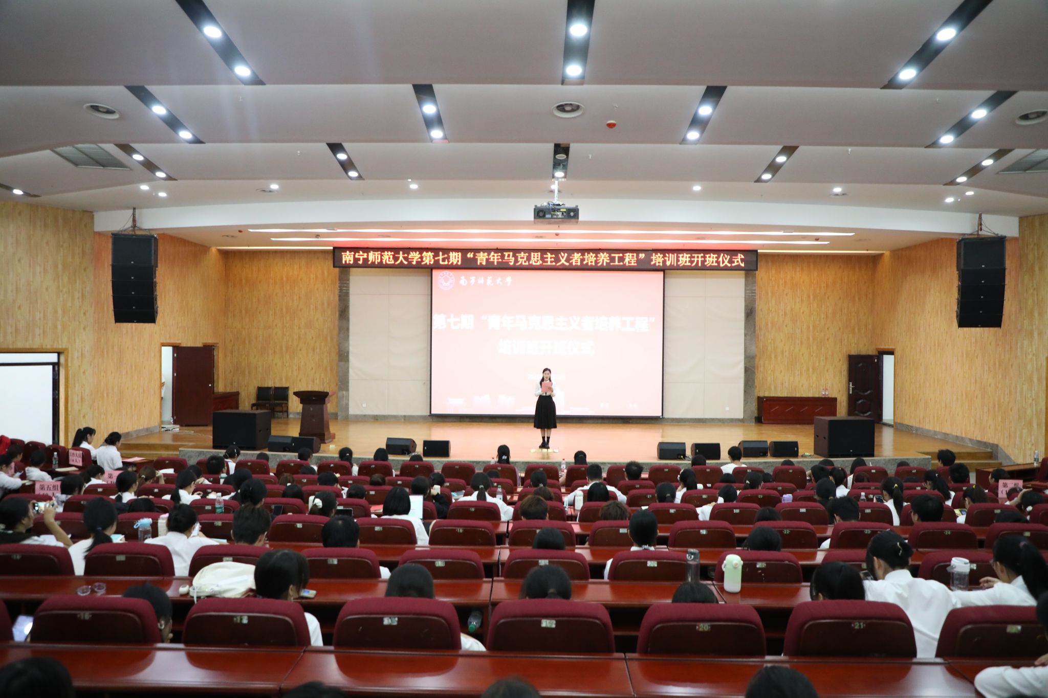 10月28日,开元官网第七期“青年马克思主义者培养工程”培训班在武鸣校区图书馆报告厅顺利开班。校团委负责人以及128名青马培训班学员参加了本次开班仪式。