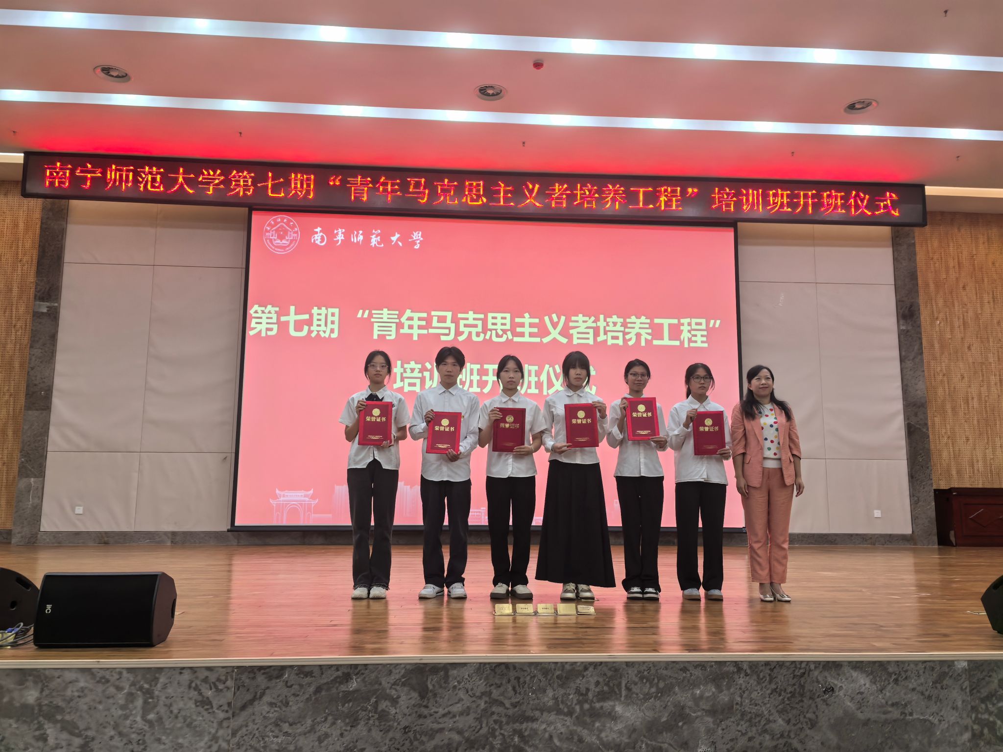 随后,李静为第六期青马培训班优秀学员代表颁发荣誉证书,开班仪式在全体人员共同唱响中国共产主义青年团团歌中落下帷幕。