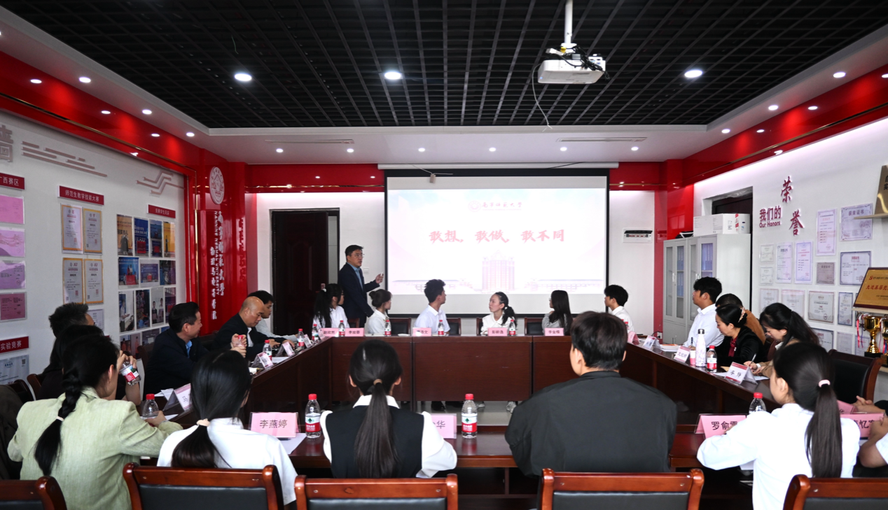 座谈会上,物理与电子学院院长陈东汇报了学院创新人才培养成效与未来规划。龙妮娜充分肯定学院以专创融合在促学风、强专业、提质量等方面所取得的人才培养成效,并以“氛围好、理念新、特色显、成果丰、素质优”五个关键词给予高度评价。她希望学院进一步浓厚科研创新氛围,彰显专业实力与特色,聚力学风建设,引导学生爱学习、会学习、学习好;聚力考研工作,精准对接学生需求,多措并举助力更多学子继续深造;聚力各类科研创新大赛,整合优质师资与平台资源,以赛促学、以赛促练,提升学生专业核心竞争力。她强调要坚持以就业为导向、以考研为进阶,构建分层分类育人体系,搭建优质资源平台,拓宽学生发展机会。