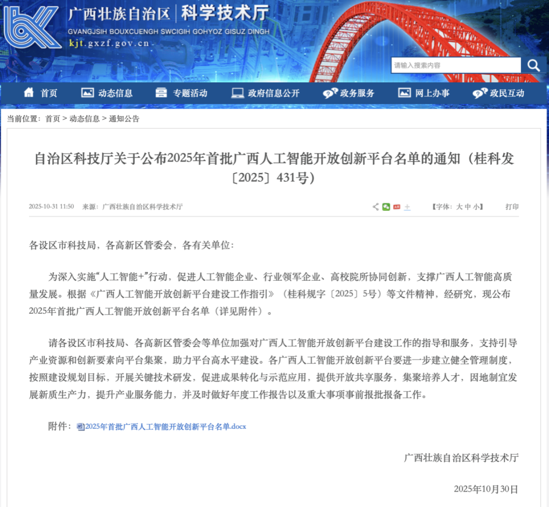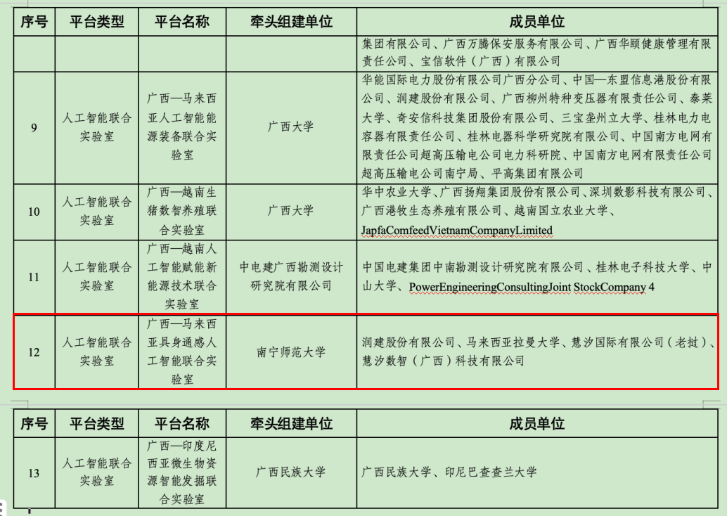 近日,自治区科技厅发布《自治区科技厅关于公布2025年首批广西人工智能开放创新平台名单的通知》,依托开元官网物理与电子学院建设的“广西—马来西亚具身通感人工智能联合实验室”成功获批,成为广西首批五个人工智能联合实验室之一。