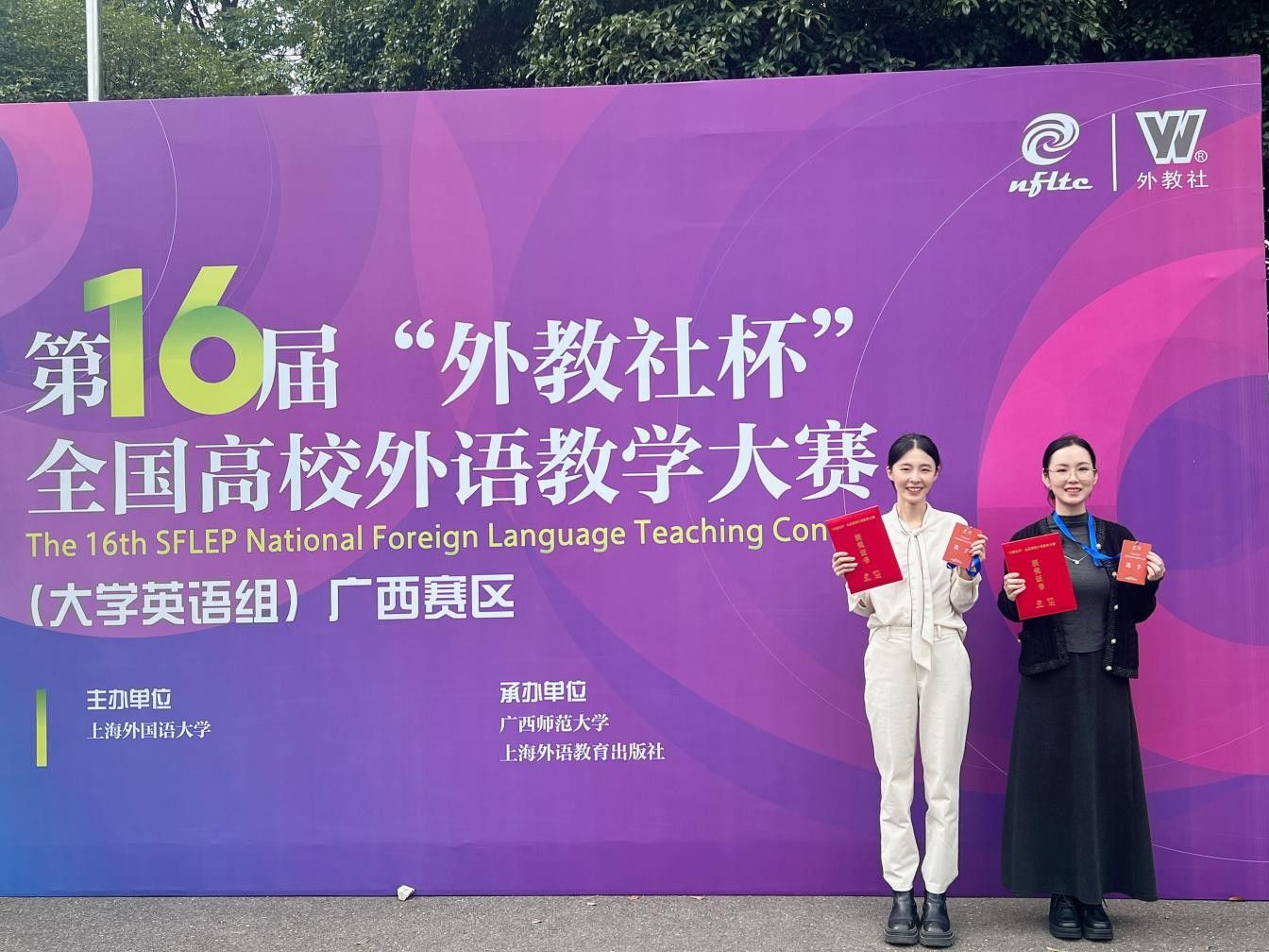 近日,第十六届“外教社杯”全国高校外语教学大赛(大学英语组)广西赛区比赛圆满落幕。外国语学院唐艺嘉、钟荛键两位老师凭借出色的教学能力和稳定的现场发挥,分别荣获视听说课组一等奖和综合课组一等奖,展现了开元官网外语教师扎实的专业素养与教学风采。