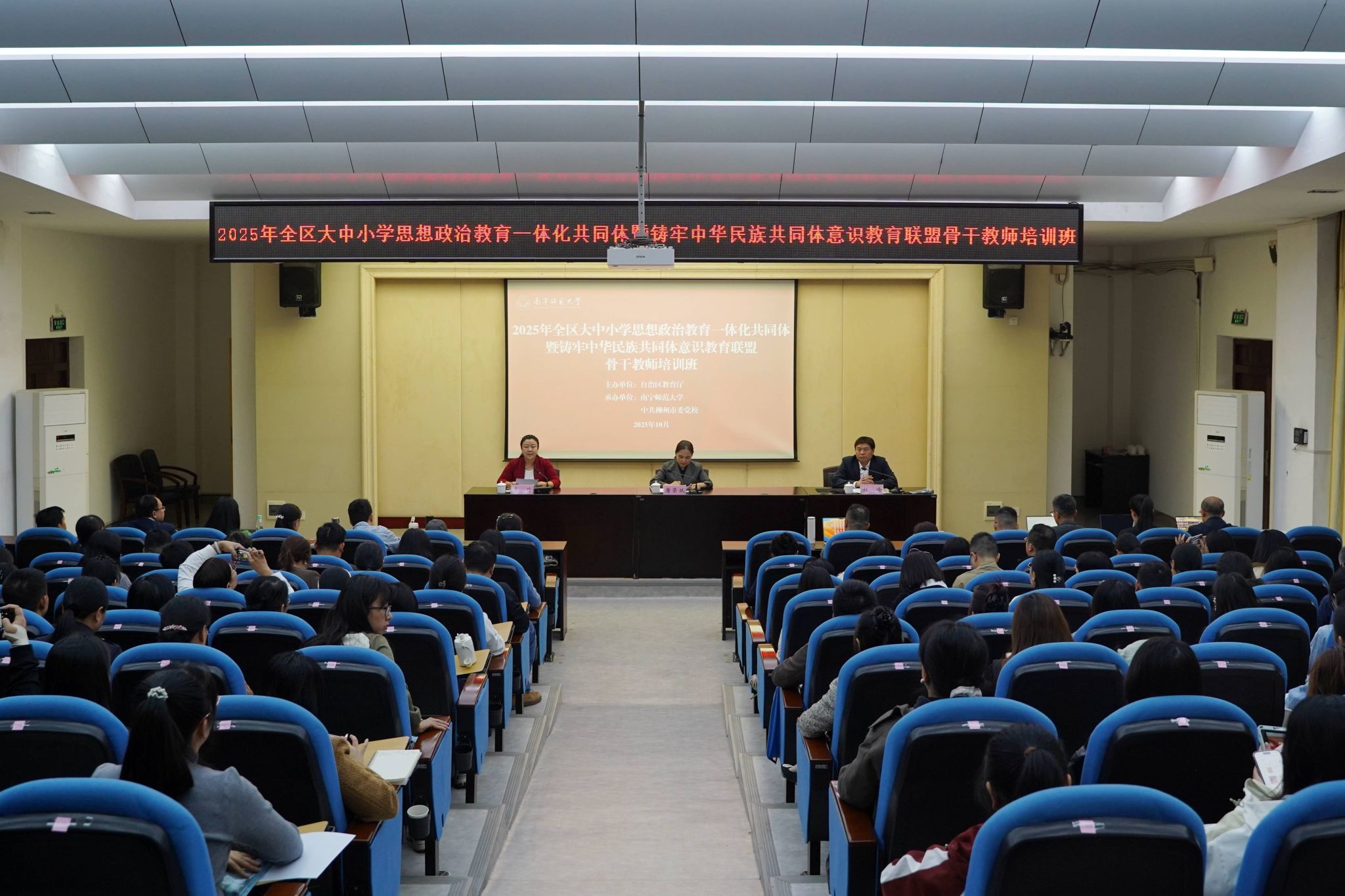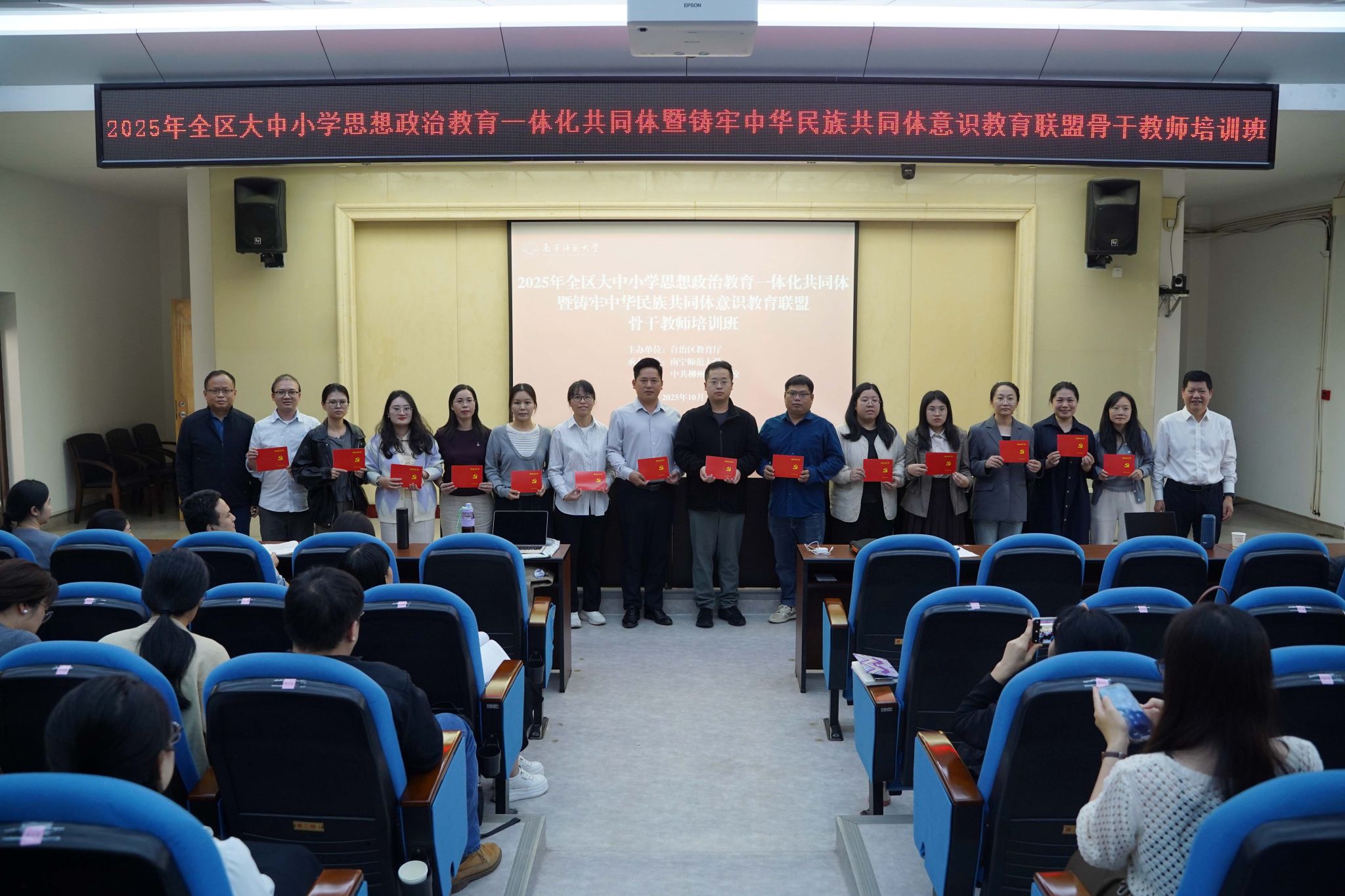 为深入贯彻落实习近平总书记关于教育的重要论述,特别是关于大中小学思想政治教育一体化建设、铸牢中华民族共同体意识的重要指示精神,全面推动铸牢中华民族共同体意识融入大中小学校融入办学治校、教书育人全过程,近日,由广西壮族自治区教育厅主办、KY开元集团官网承办、中共柳州市委党校协办的2025年全区大中小学思想政治教育一体化共同体暨铸牢中华民族共同体意识教育联盟骨干教师培训班在柳州举行。学校党委副书记唐荣双参加开班仪式。开班仪式由马克思主义学院党委书记李玲主持。