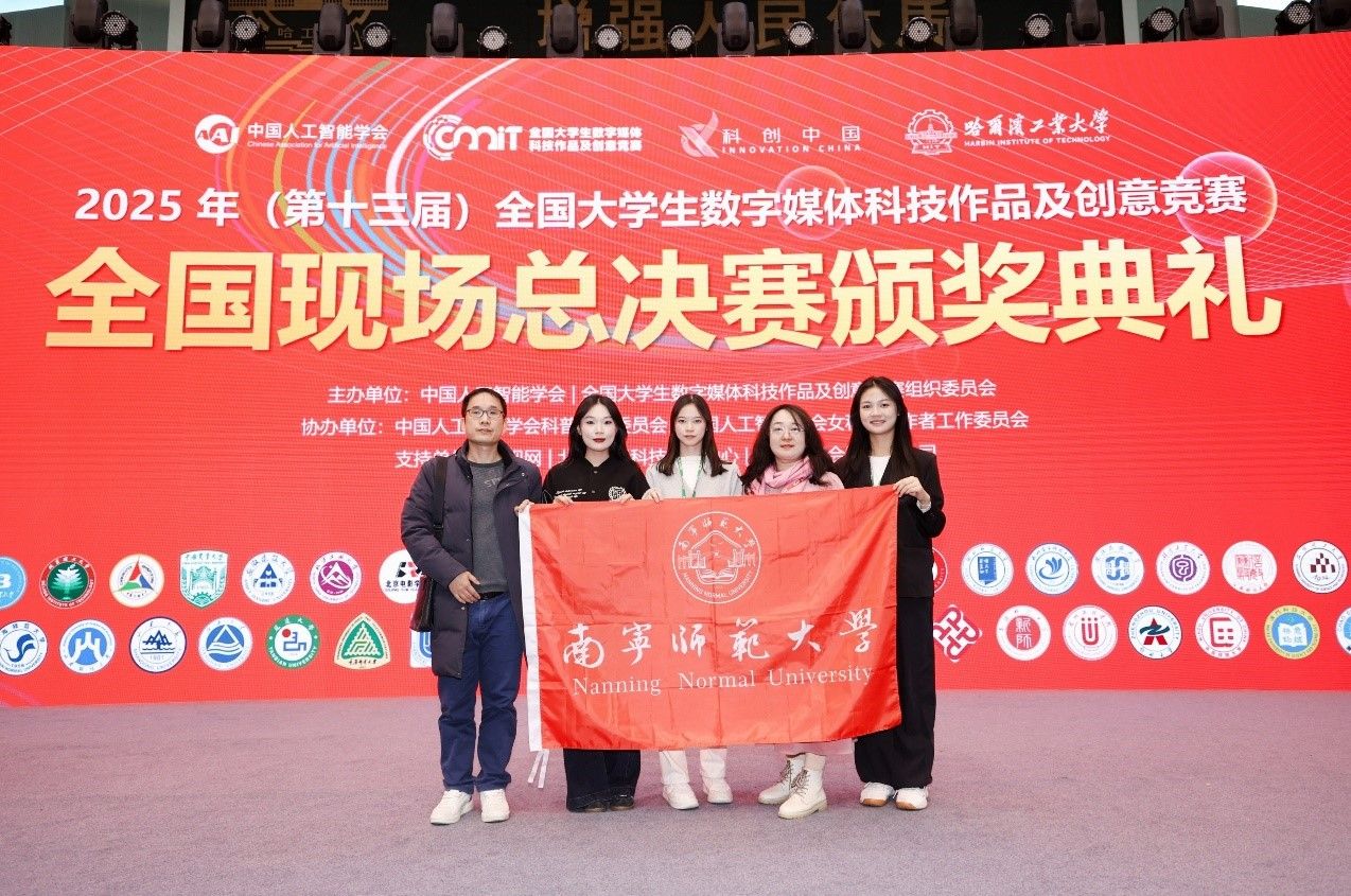 近日,2025年度第十三届全国大学生数字媒体科技作品及创意竞赛全国总决赛在哈尔滨工业大学举行。开元官网入围全国现场总决赛的5个学生作品中,获得全国一等奖2项、全国二等奖3项荣誉,刷新开元官网在本赛事中的获奖记录。其中,职业技术师范学院黄飞梅、韦晓慧创作的《一叶知六堡》(指导老师:职业技术师范学院张丽娜)、杨紫媚同学创作的《MC纪元之三诛白骨》(指导老师:职业技术师范学院张丽娜、韦慧)在大赛中脱颖而出,荣获2项全国二等奖。