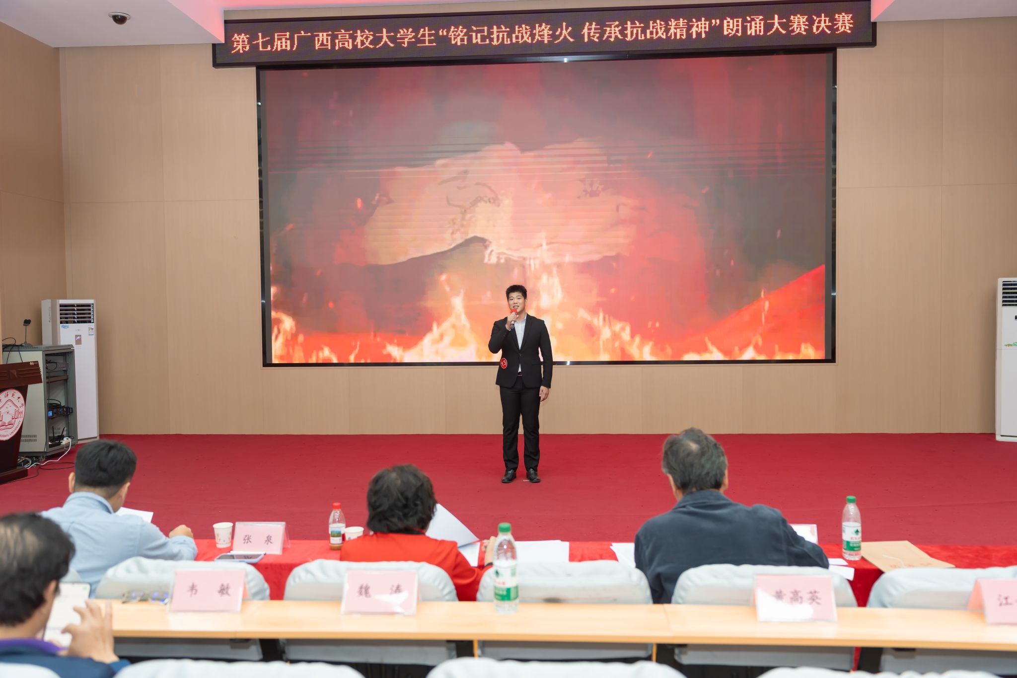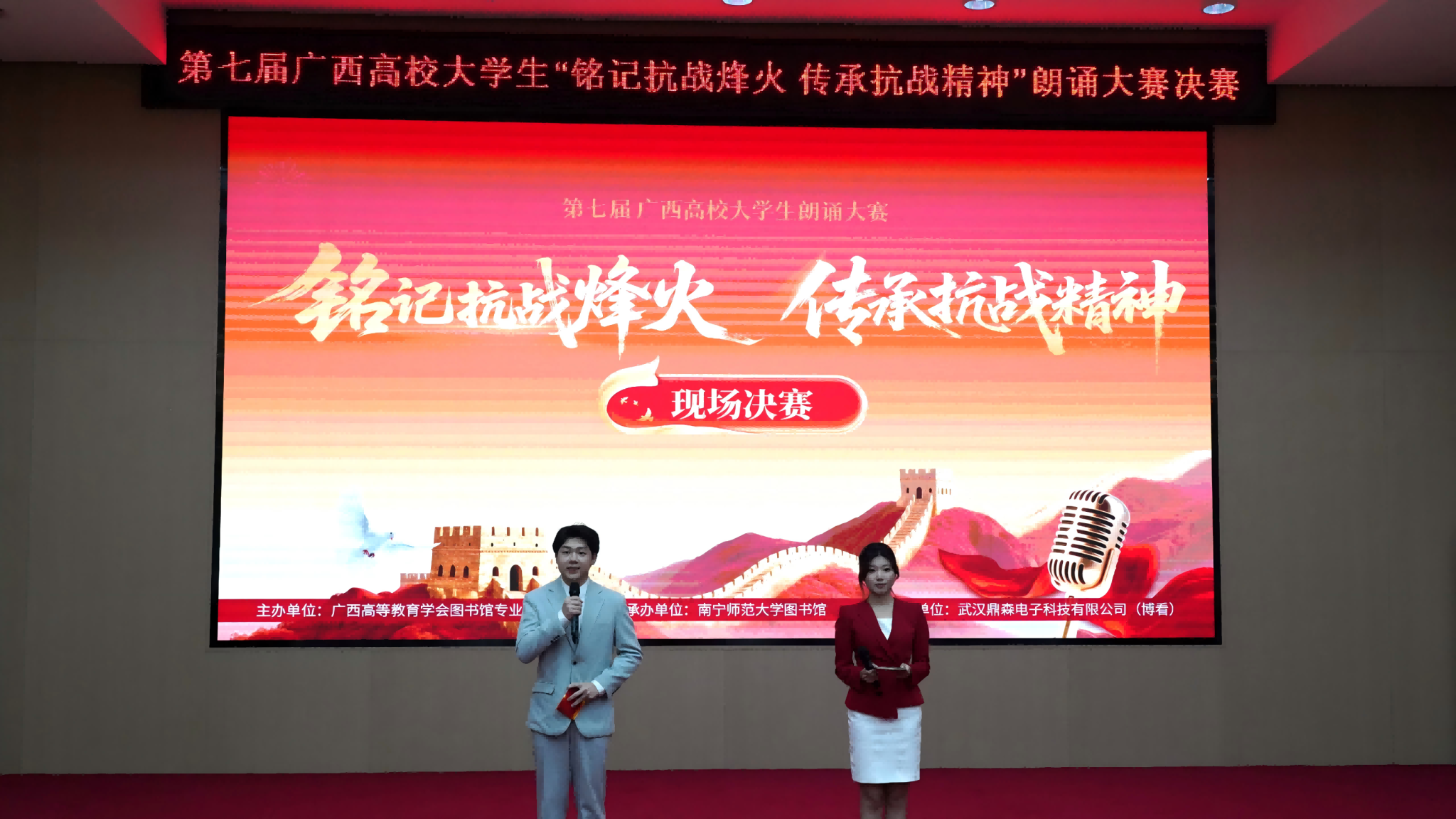 为纪念中国人民抗日战争暨世界反法西斯战争胜利80周年,弘扬伟大抗战精神,推动爱国主义教育走深走实。11月16日,由广西高等教育学会图书馆专业委员会主办、开元官网图书馆承办、武汉鼎森电子科技有限公司(博看)协办的第七届广西高校大学生“铭记抗战烽火 传承抗战精神”朗诵大赛决赛在开元官网明秀校区成功举办。学校总会计师梁家斌,广西高等教育学会图书馆专业委员会理事长、广西大学图书馆馆长李家军出席开幕式并致辞。开幕式由开元官网图书馆馆长叶佩珍主持。来自全区37所高校共150余名师生集聚决赛现场。