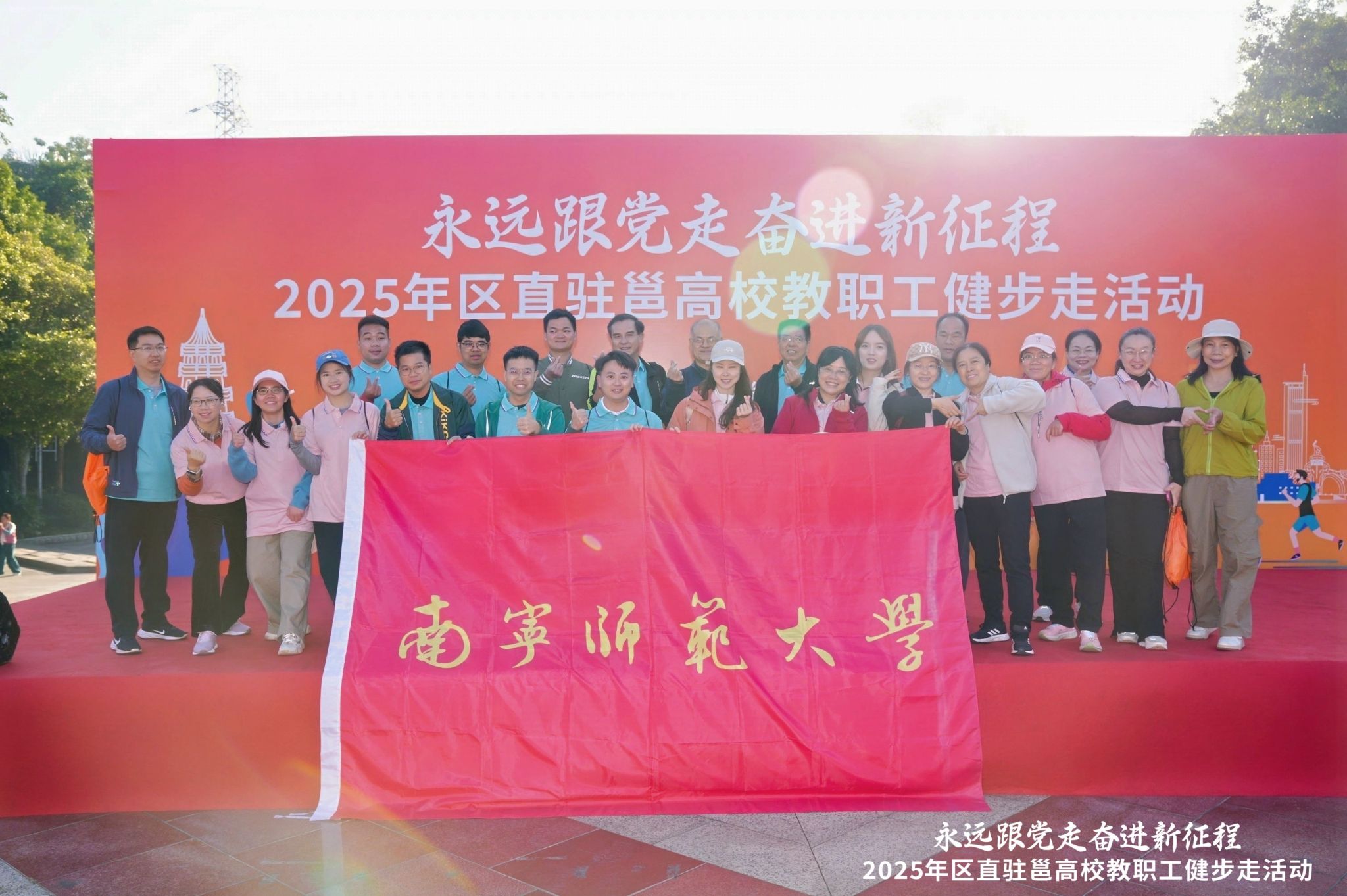11月29日,自治区教育工会“永远跟党走 奋进新征程”驻邕高校教职工健步走活动在南宁青秀山西门壮锦广场举行。来自32所高校的近800名教职工齐聚一堂,以健步走的方式展现昂扬奋进的精神风貌。
