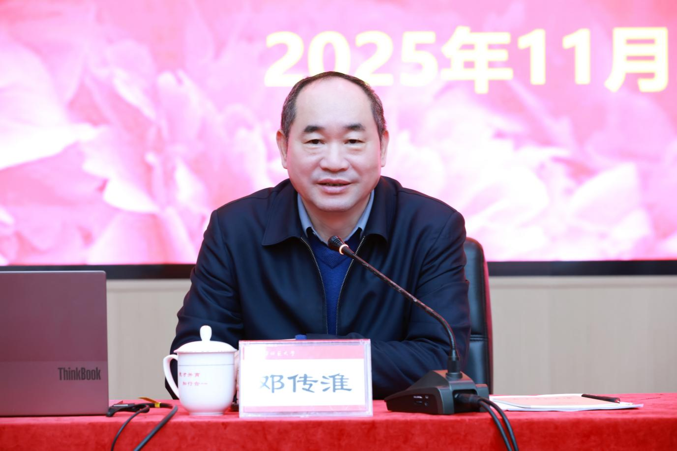 11月28日下午,中国教育学会学术委员会常务副主任委员、教育部政策法规司原司长邓传淮应邀来校,在明秀校区文星楼301报告厅为师生代表开展专题讲座。讲座由学校纪委书记李美清主持。