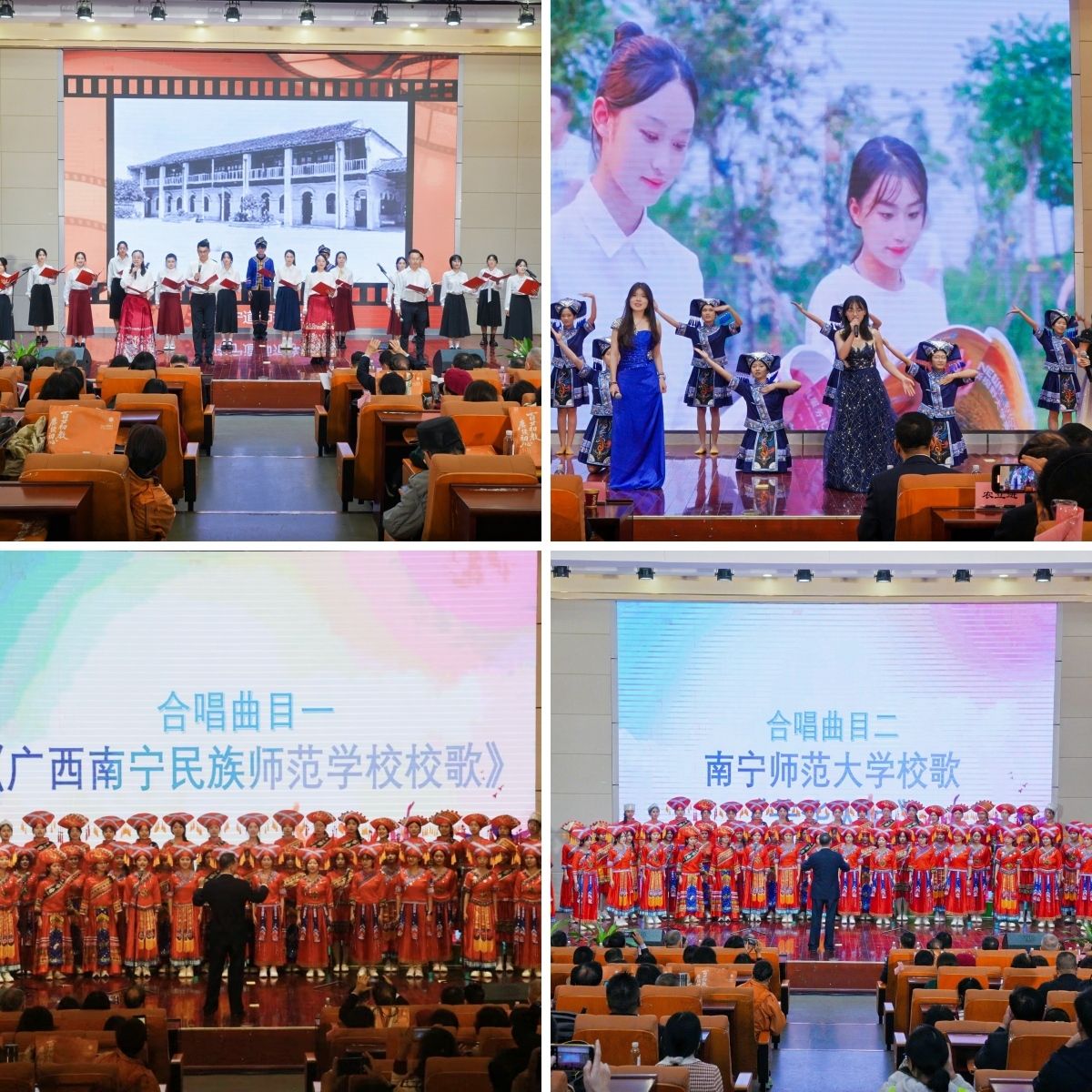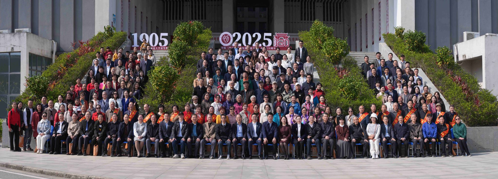随后的师生献词、献歌环节中,在校师生同台朗诵专门为学院办学120周年撰写的诗词《追光而遇,沐光而行》;校友代表与在校学生逐一献上原广西南宁民族师范学校莫一军老师原创的经典歌曲。大会最后在原广西南宁民族师范学校校歌以及KY开元集团官网校歌《芳华人间》中落下帷幕。全体嘉宾及校友移步理综楼前合影留念,定格这一意义非凡的时刻。