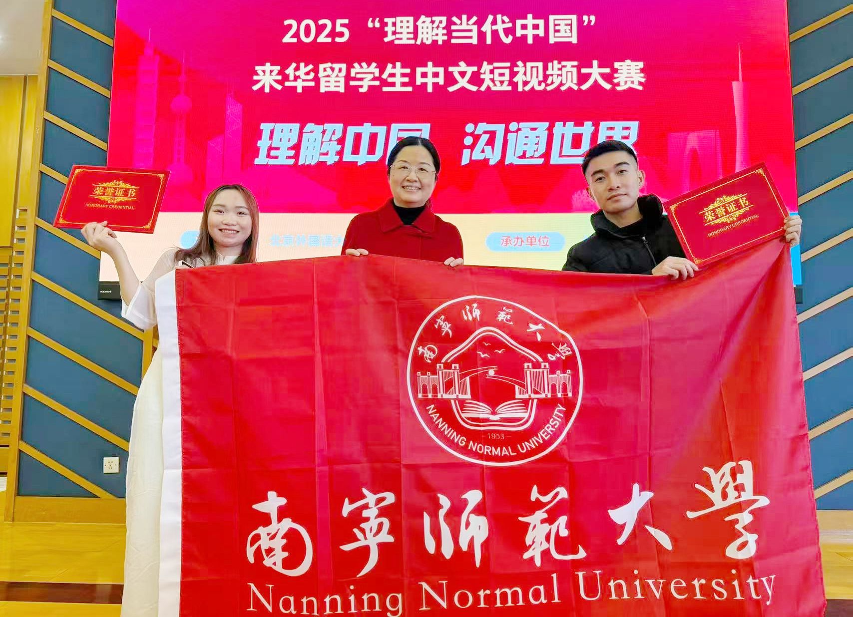 近日,2025“理解当代中国”来华留学生中文短视频大赛全国总决赛在北京圆满落幕。开元官网越南留学生甲琼如团队的作品《以AI为笔,画美丽广西》从全国众多参赛作品中脱颖而出,荣获全国总决赛银奖。国际教育学院谢娜菲、校党委宣传部农之天两位老师荣获“优秀指导老师银奖”。