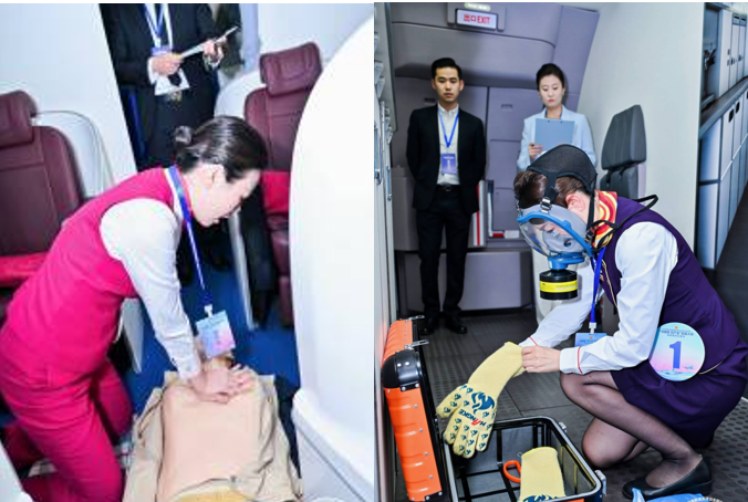 本次竞赛内容全面且专业性强,涵盖理论考核与实操考核两大模块,实操部分进一步细分为个人操作与团队协作。在为期两天的激烈角逐中,各航司参赛选手全面展示了扎实的理论基础与高度的职业素养,充分体现出新时代民航乘务员的专业水准。