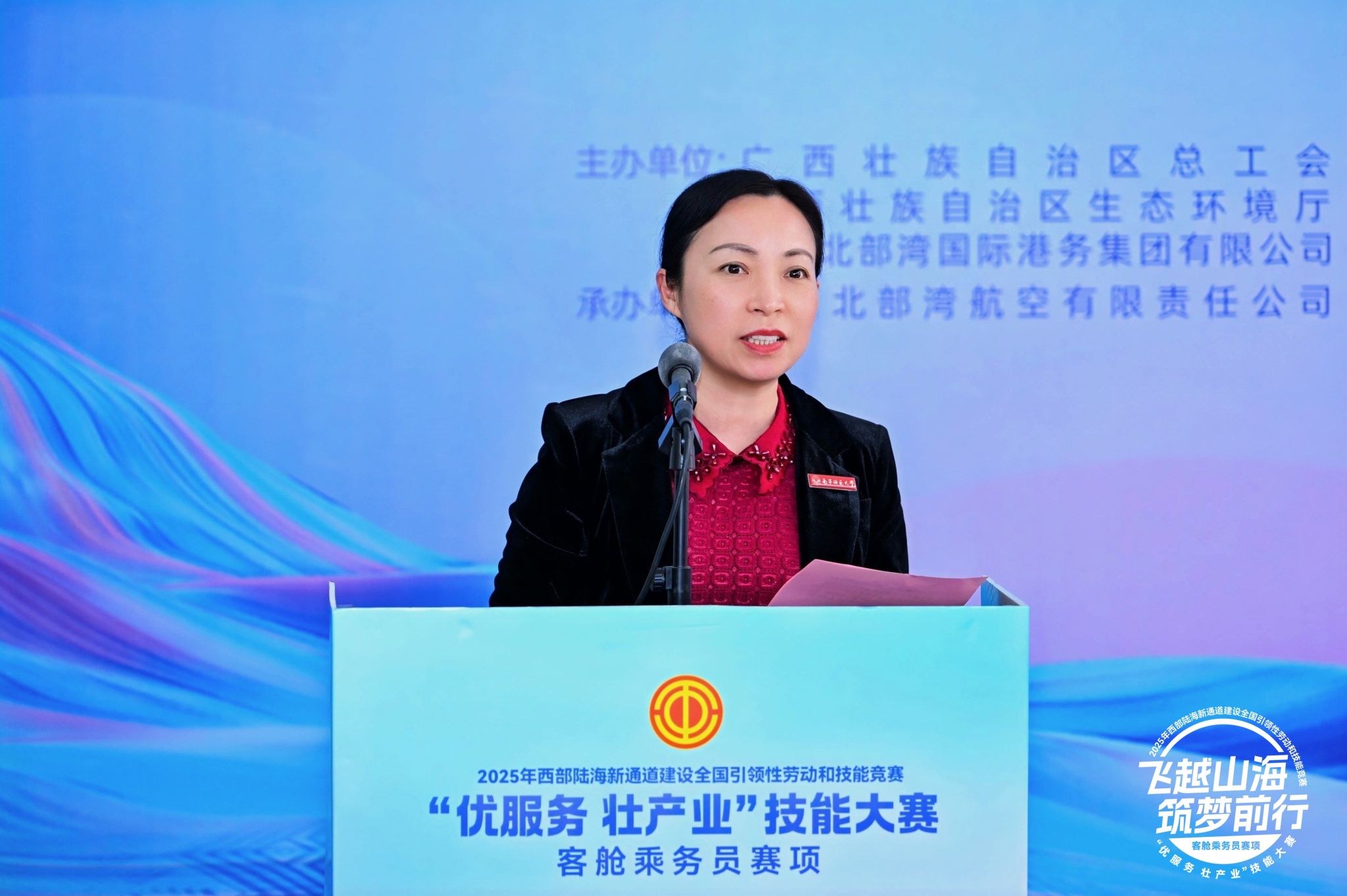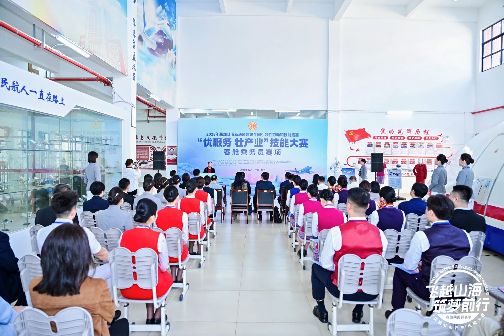 12月1日至2日,2025年西部陆海新通道建设全国引领性劳动和技能竞赛“优服务、壮产业”技能大赛客舱乘务员赛项,在开元官网旅游与文化学院举行。本届赛事由广西壮族自治区总工会、西部陆海新通道领导小组办公室、广西壮族自治区人力资源和社会保障厅等共11家单位联合主办。广西民航监督管理局领导,南方航空、深圳航空、北部湾航空、桂林航空的领导和选手出席了开幕式,学校副校长龙妮娜出席开幕式并致辞。旅游与文化学院师生全程参与竞赛的志愿服务,并进行了观摩。