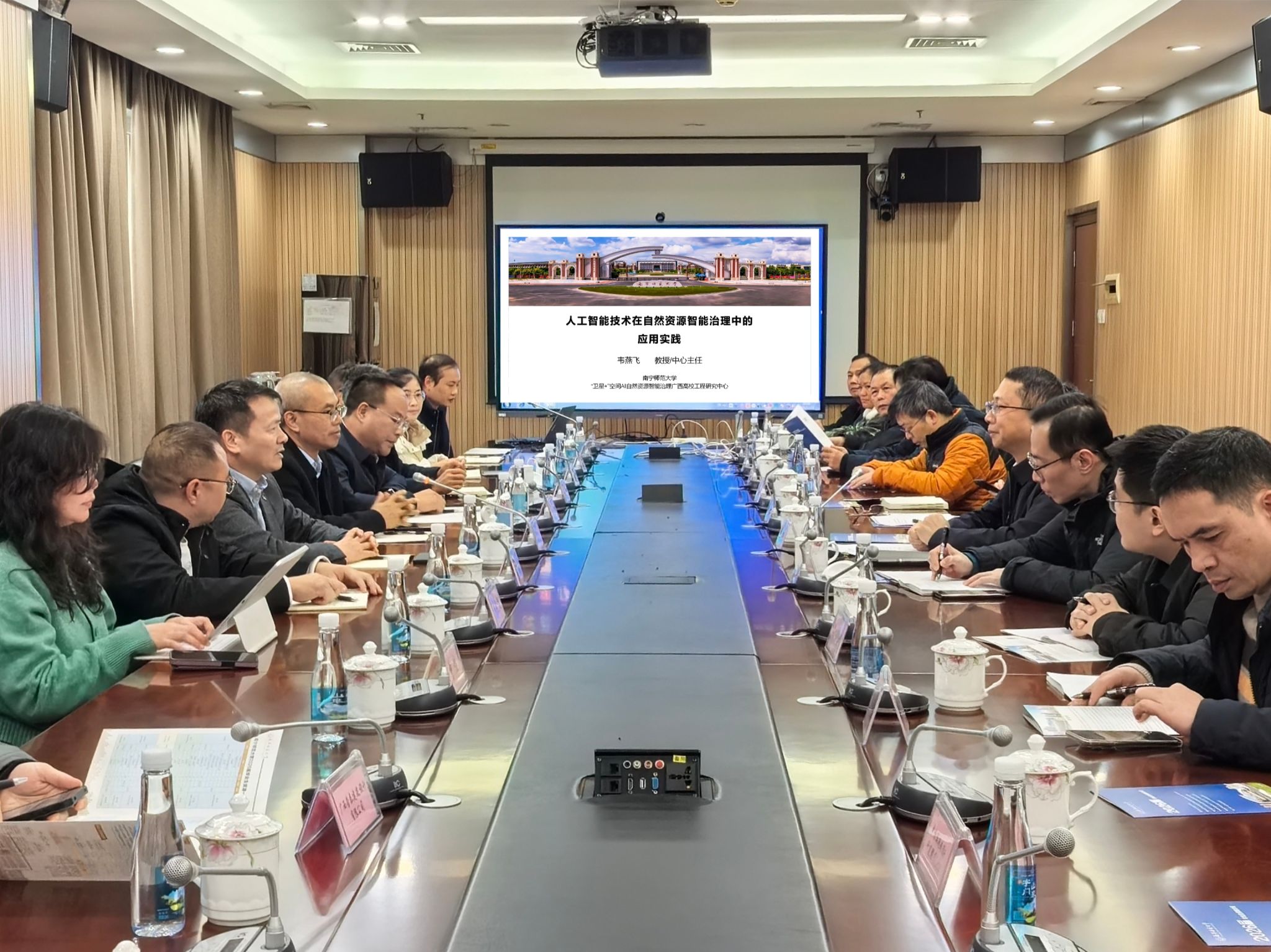 在柳州市自然资源和规划局,调研组与该局局长雷道理等主要领导、相关科室及分局负责人、规划设计相关企业代表进行了座谈交流。双方围绕“地智通”AI大模型赋能村庄规划建设、空间智能技术在自然资源治理中的应用和学生实习实训等内容展开了深入探讨。雷道理从AI技术赋能、产教融合等方面提出了与学校加强合作的建议。卢远对合作建议表示充分肯定,希望双方进一步深化校地交流合作,共同推动“地智通”AI大模型落地应用,为学生提供更多实习实训和就业机会,实现多方共赢。