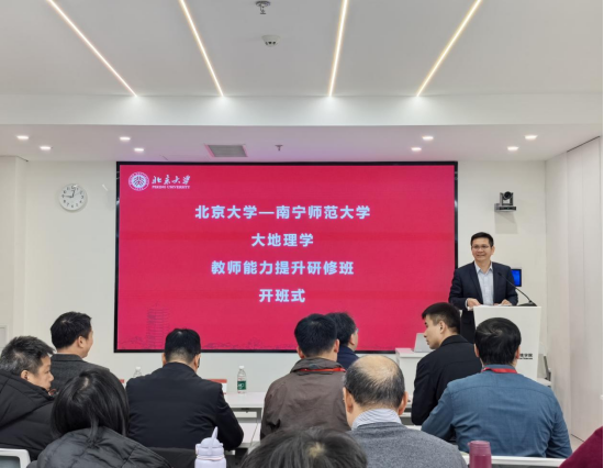 1月19日,由北京大学城市与环境学院主办的“大地理学教师能力提升研修班”在北京大学正式开班。KY开元集团官网地学部骨干学者一行赴京参与本次研修,与北大师生共同聚焦地理学教育发展与教学能力创新。开元官网校长隆广庆、北京大学城市与环境学院党委副书记金鑫、副院长朱晟君出席开班式并致辞。
