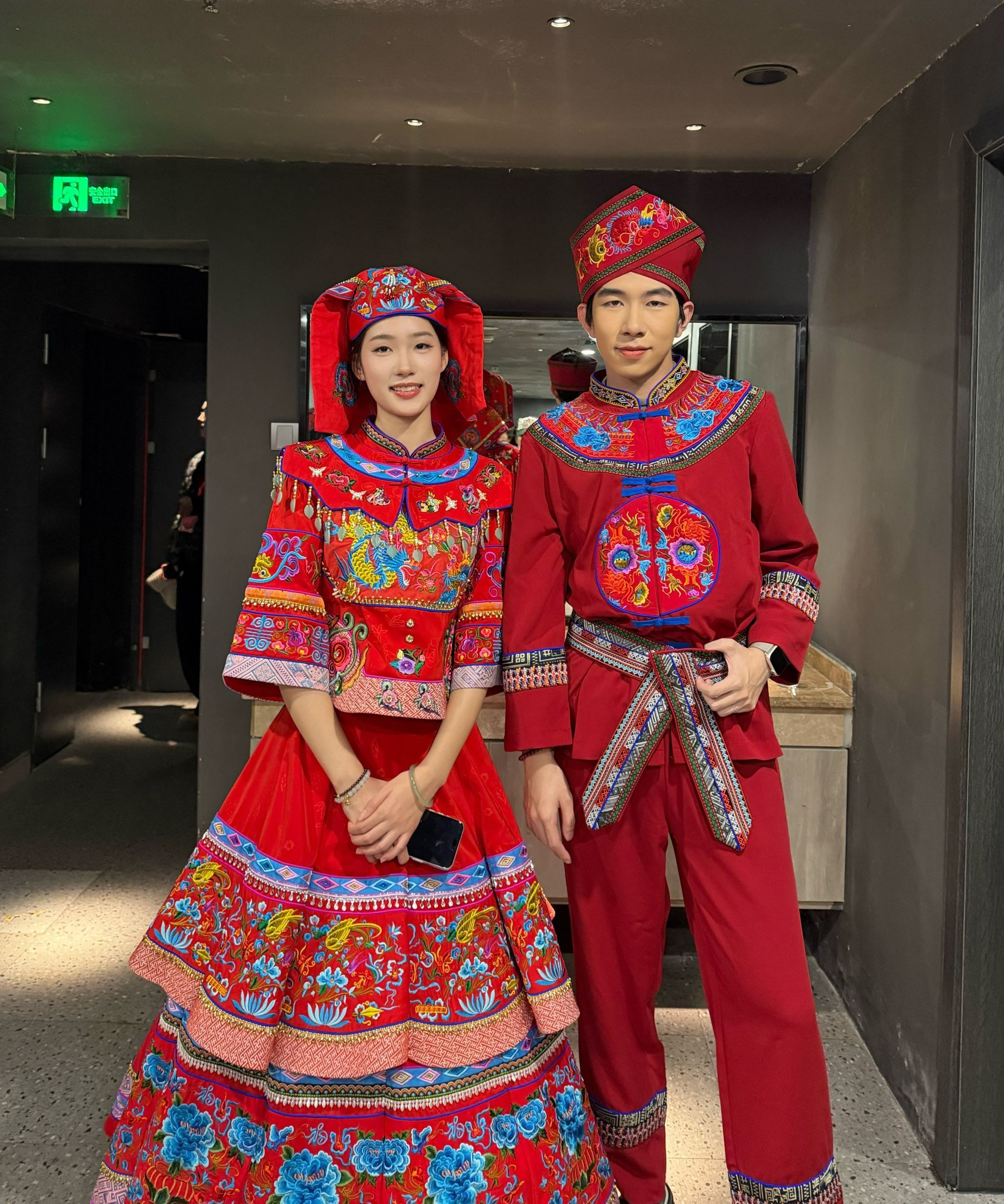 近期,开元官网旅游与文化学院2023级航空服务艺术与管理专业学生丁硕、胡佳佳受邀参加了2026年春节戏曲晚会,与南宁市具代表性的壮族传统服饰及彩绣工艺非遗传承人陆兰珍女士联袂登台,共同演绎壮锦非遗文化。