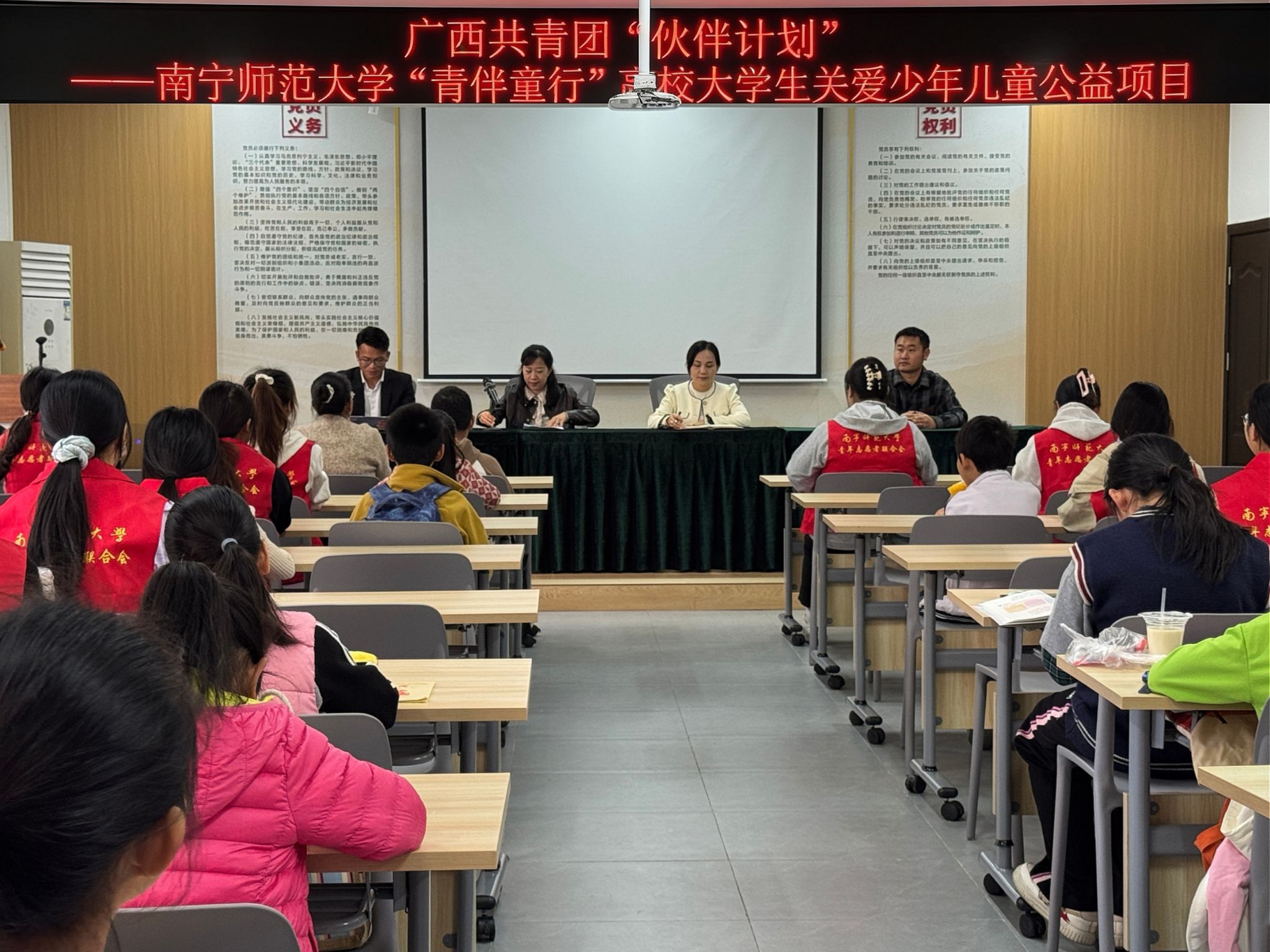 3月14日,开元官网“青伴童行”高校大学生关爱少年儿童爱心托管项目启动仪式在西乡塘区明秀南社区顺利举行。西乡塘区团委、北湖街道团委、开元官网团委负责人及项目志愿者、社区少年儿童共同参与活动。