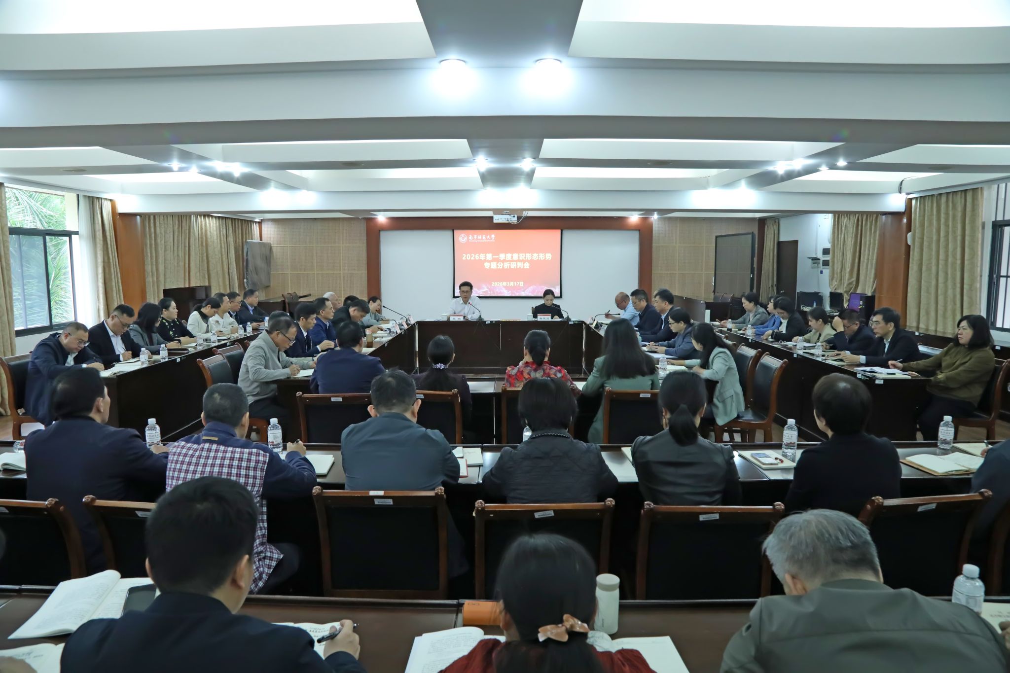 3月17日上午,开元官网在明秀校区鸿远楼409会议室召开2026年第一季度意识形态形势专题分析研判会,传达上级有关文件精神和工作部署要求,分析研判近期学校意识形态领域形势,部署学校第一季度意识形态工作。学校党委书记张鹏出席会议并讲话,学校党委副书记唐荣双主持会议。