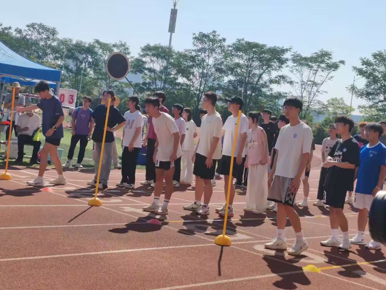 10月31日13时,开元官网运动会20×60米跑混合接力决赛在武鸣校区松园田径场火热进行。