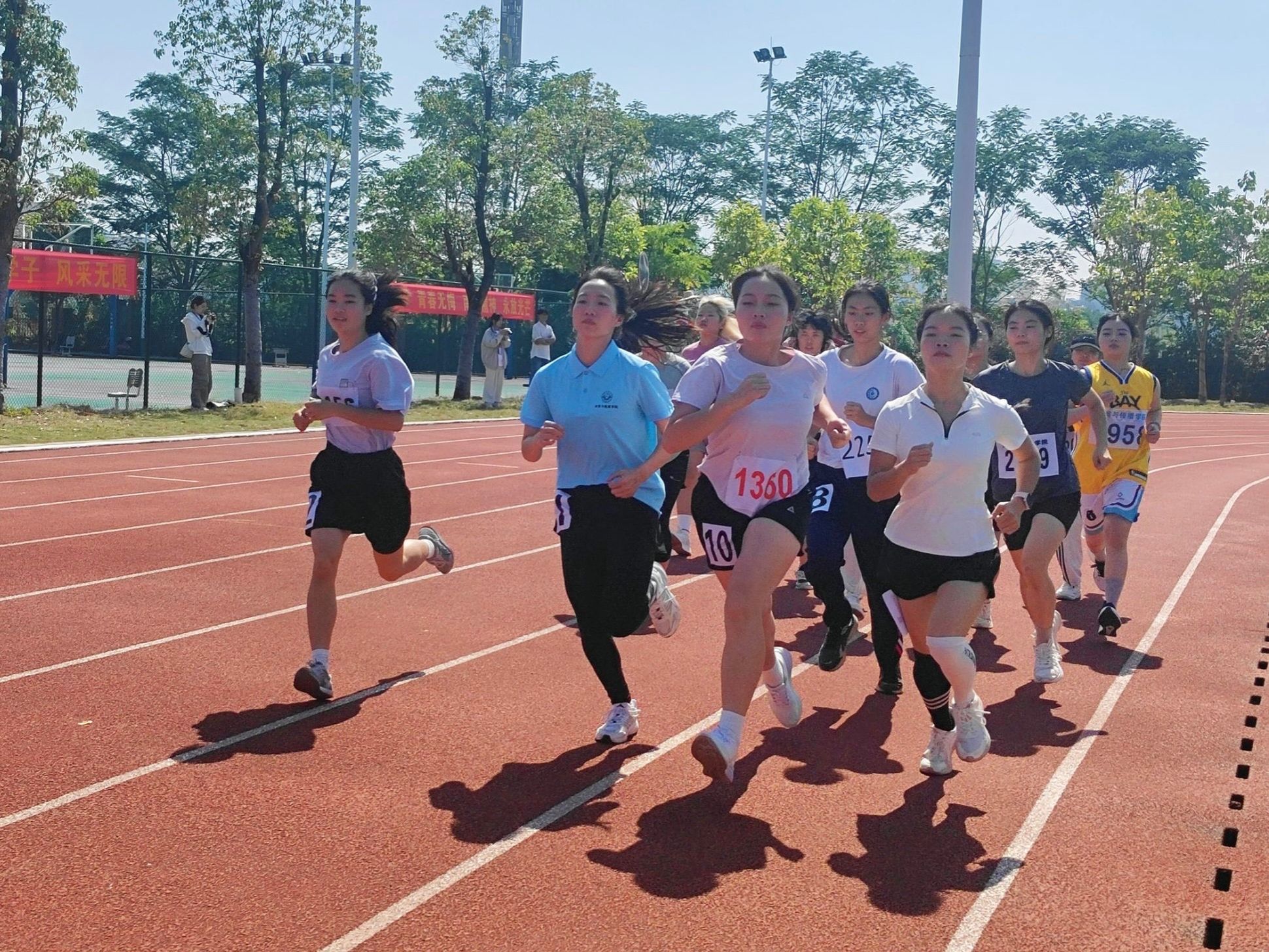 随着裁判员一声枪响,运动员们恰如离弦之疾箭从起点上奔离。这是一场速度与耐力的激烈较量,漫长的赛道,滴落的汗水,青春的律动,疲惫侵袭着运动员们的双腿,但是同学们在观众席上的呐喊加油成为了她们前进的力量,一步一步向终点趋近。伴随着同学们热烈的呼喊,这场比赛终于迎来了最后一圈,掌声与呐喊也在冲线的瞬间潮起,充斥全场!