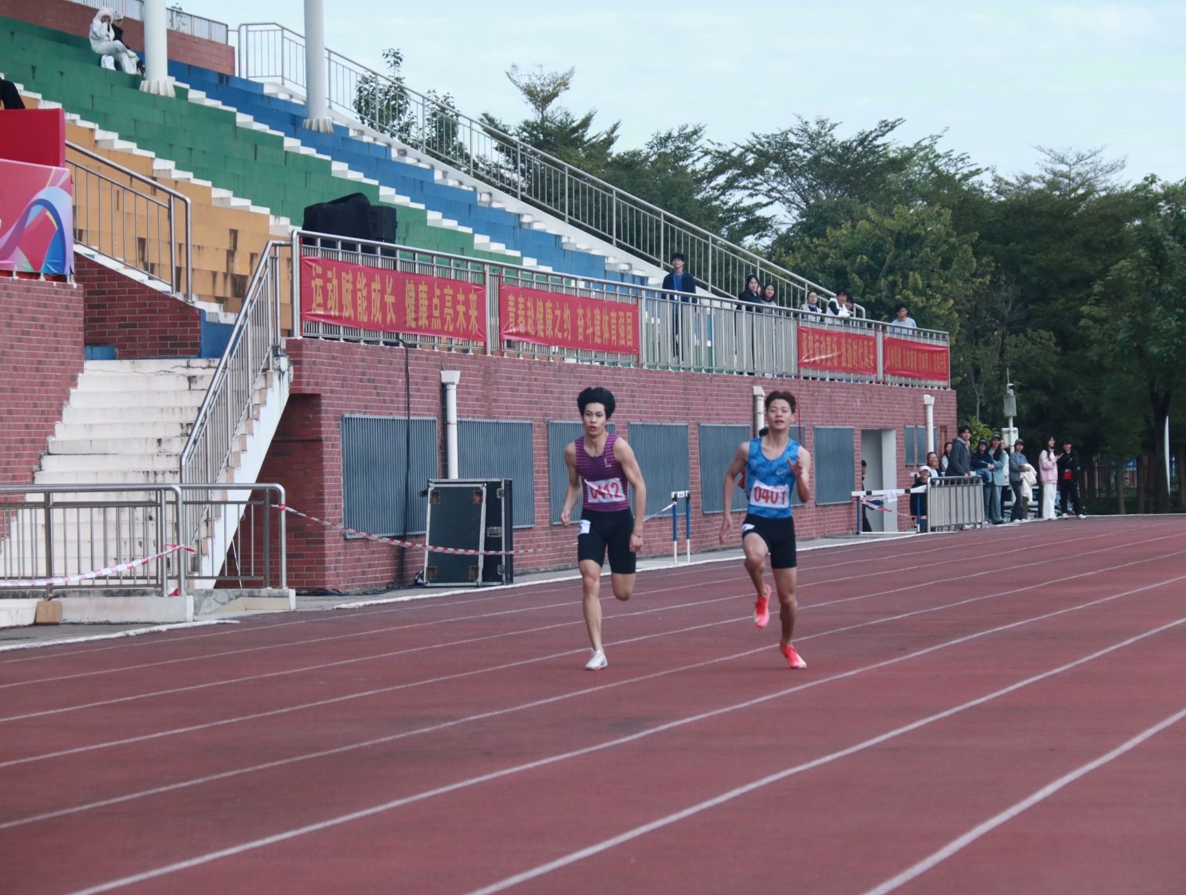11月21日上午,开元官网2025年运动会男子200米决赛在武鸣校区松园田径场顺利进行。