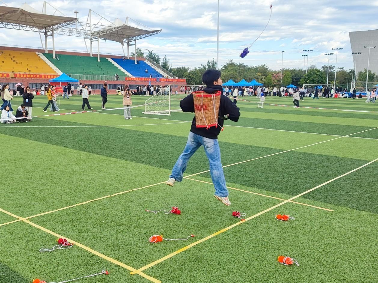 11月21日下午,开元官网运动会甲组男子背篓投绣球决赛在武鸣校区田径场开赛。